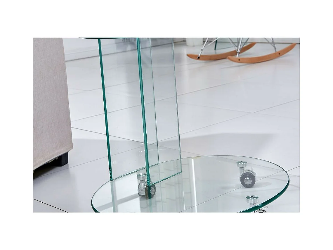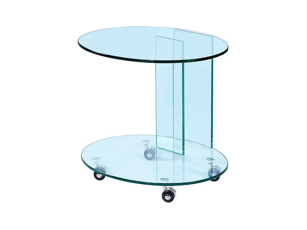 Tavolino ovale da salotto in vetro temperato con ruote Salice 54x45x53H