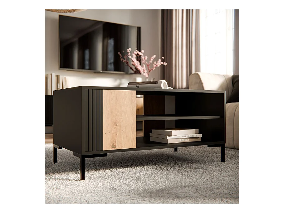 Tavolino contemporaneo in stile rovere wotan con finitura nera PUMP