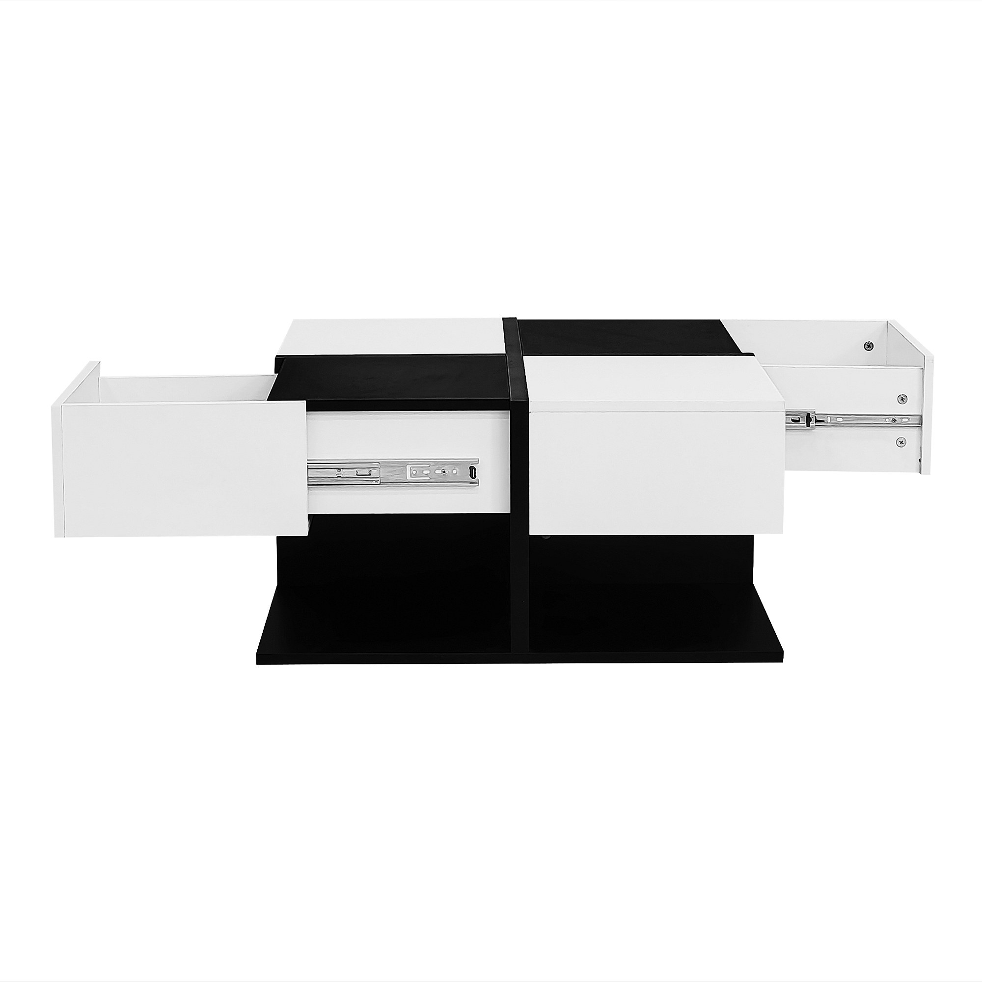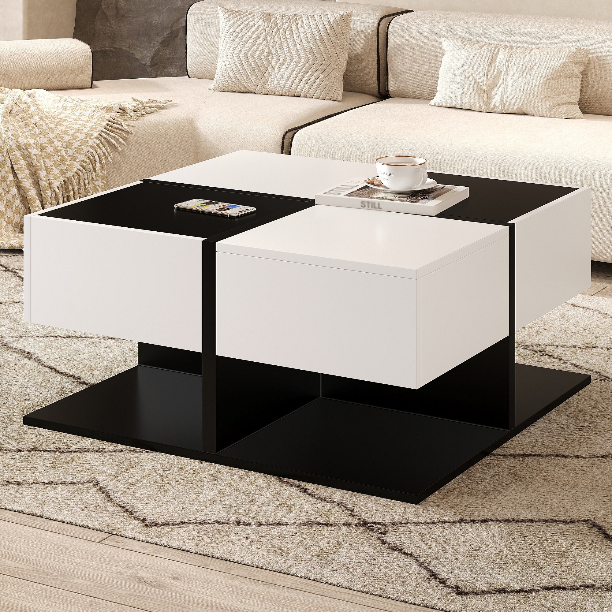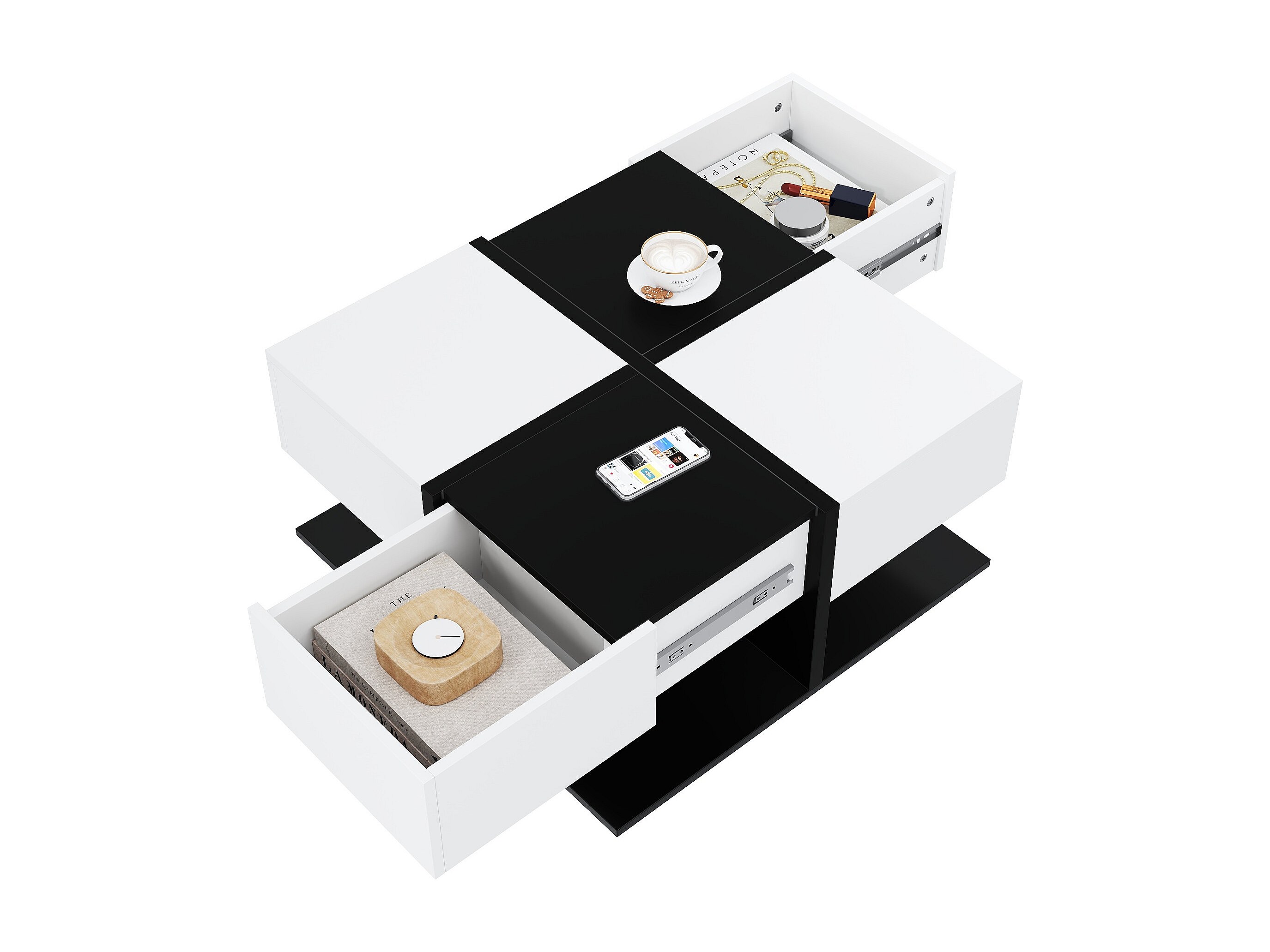 Tavolino da caffè quadrato bianco e nero - Tavolino da caffè con 3 cassetti e piano sollevabile - spazio di archiviazione aperto