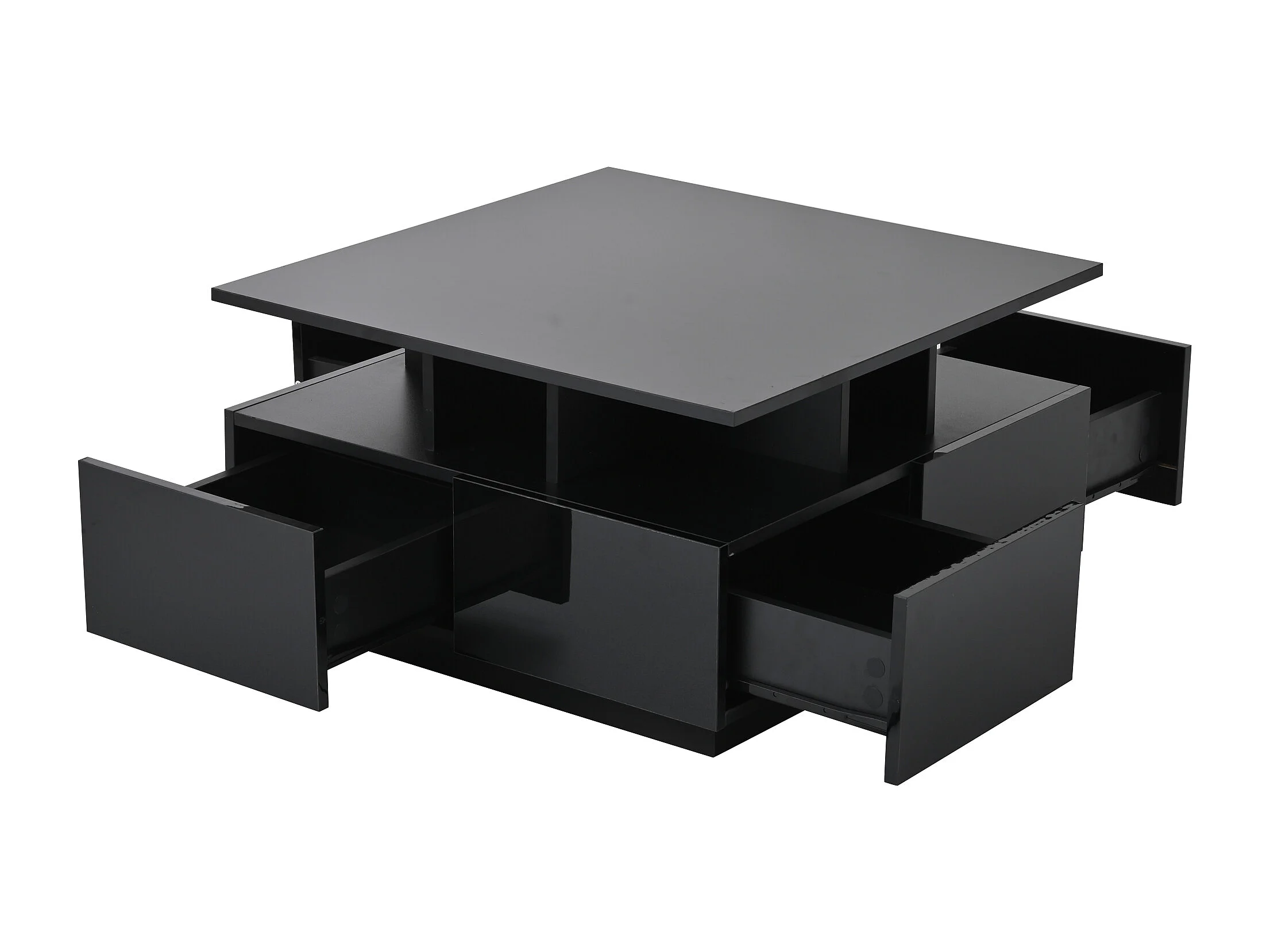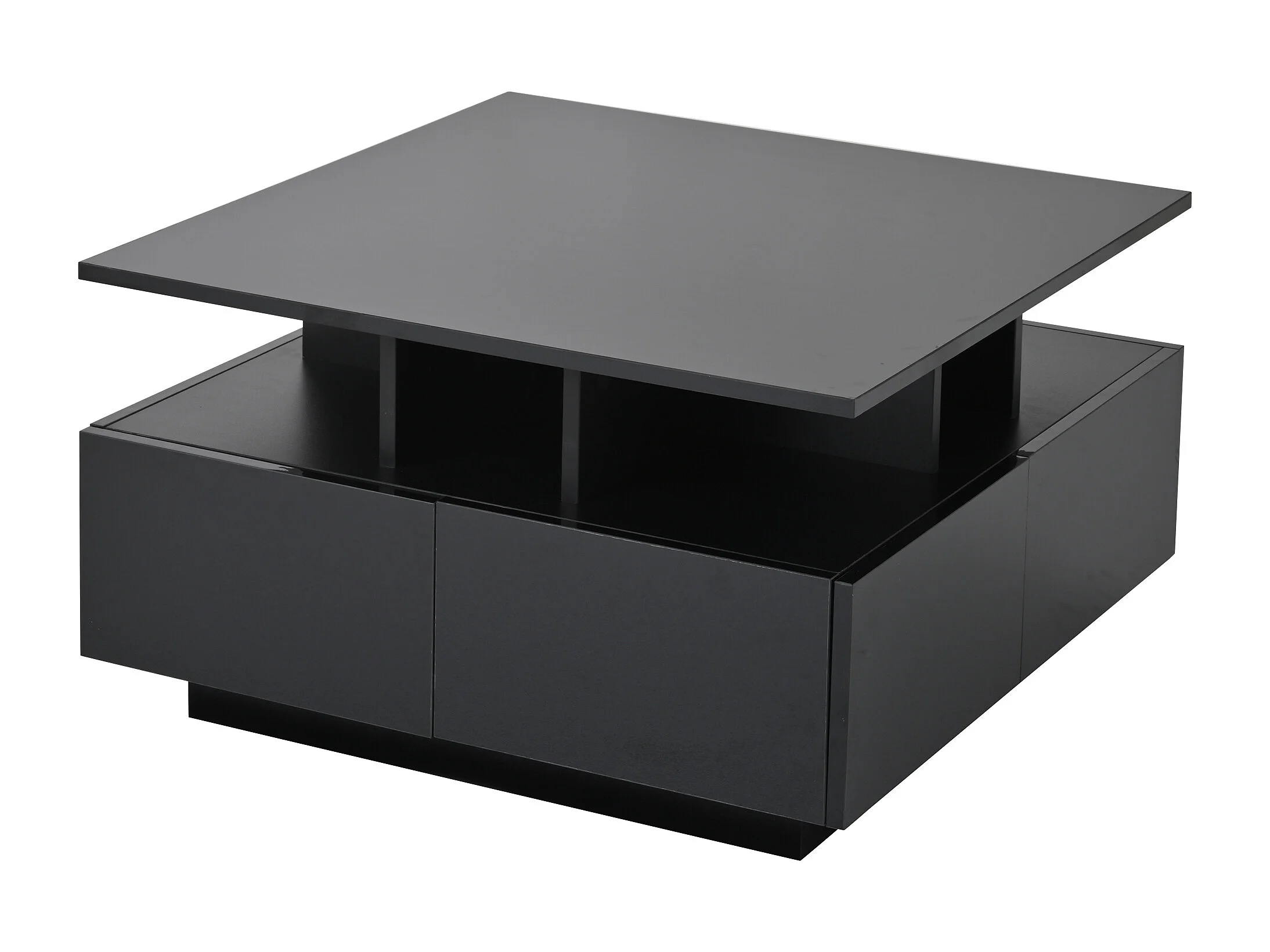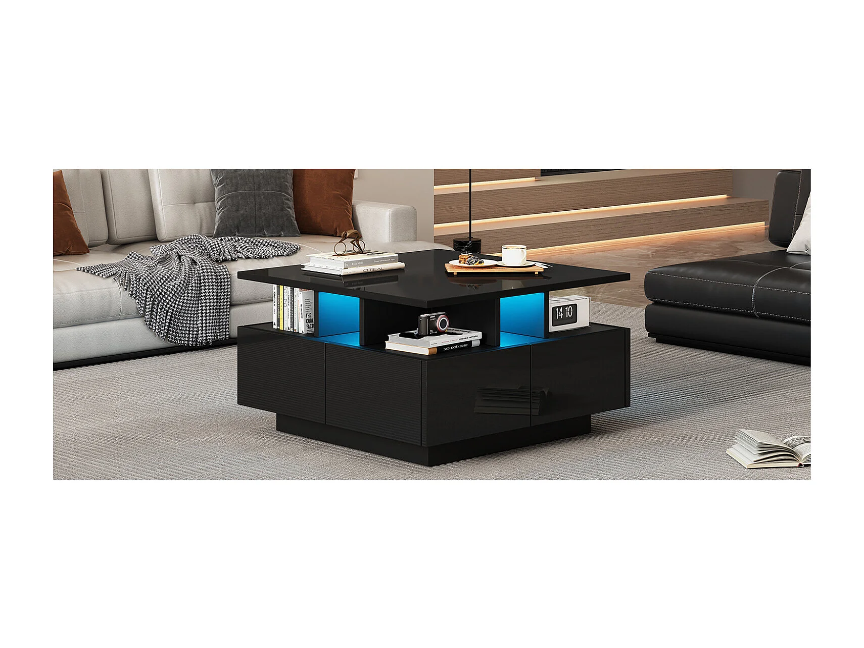 Tavolino quadrato con 4 cassetti e illuminazione a LED - Finitura nero lucido