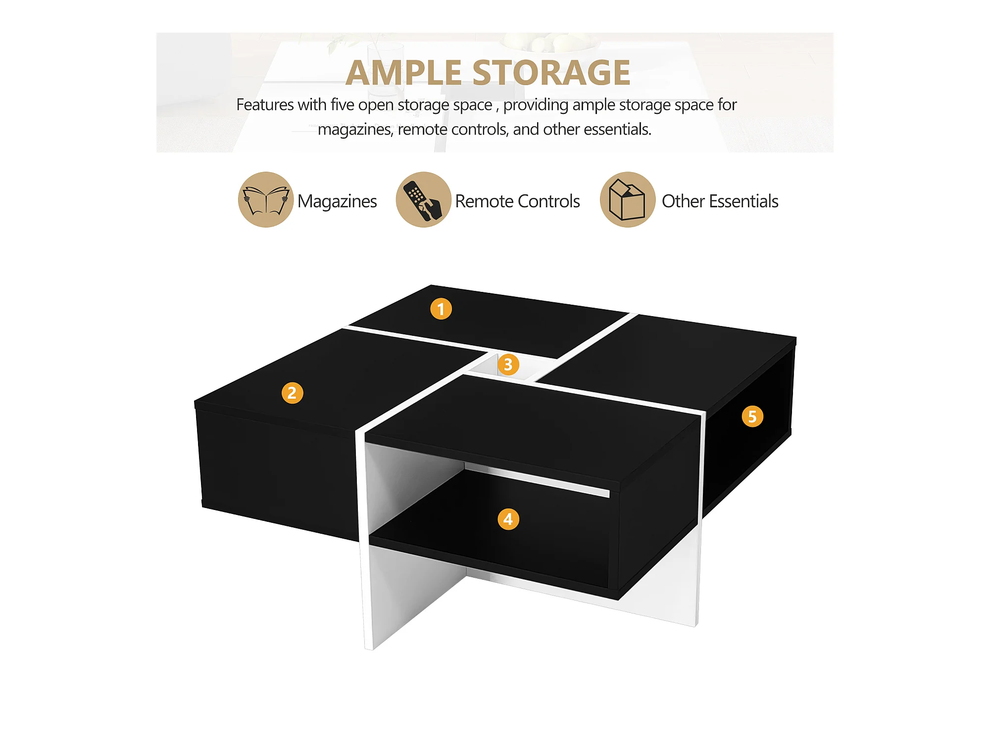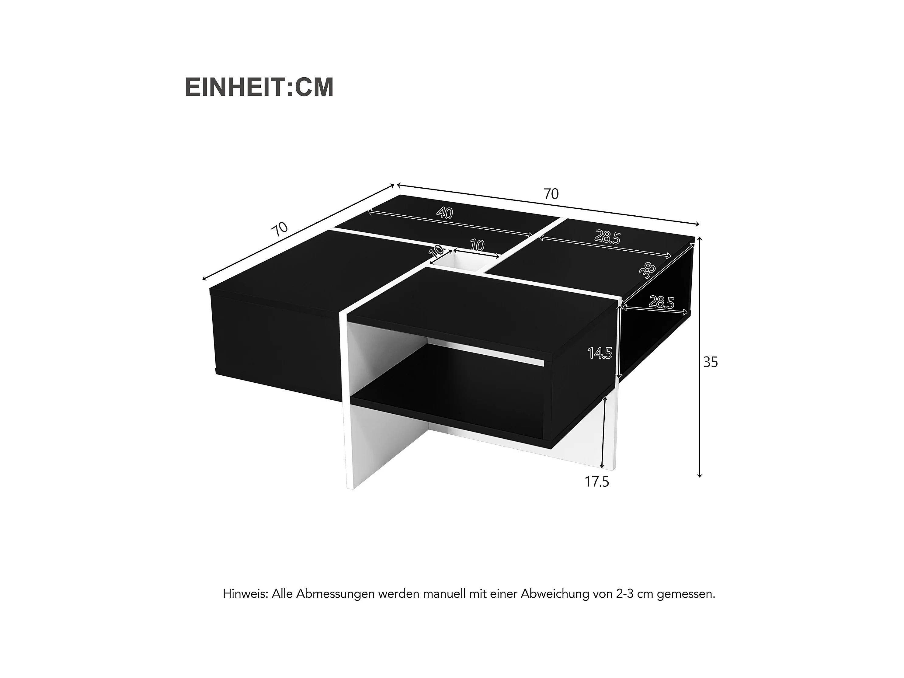 Tavolino quadrato con 5 scomparti - 70 x 70 x 35 cm - truciolare - nero