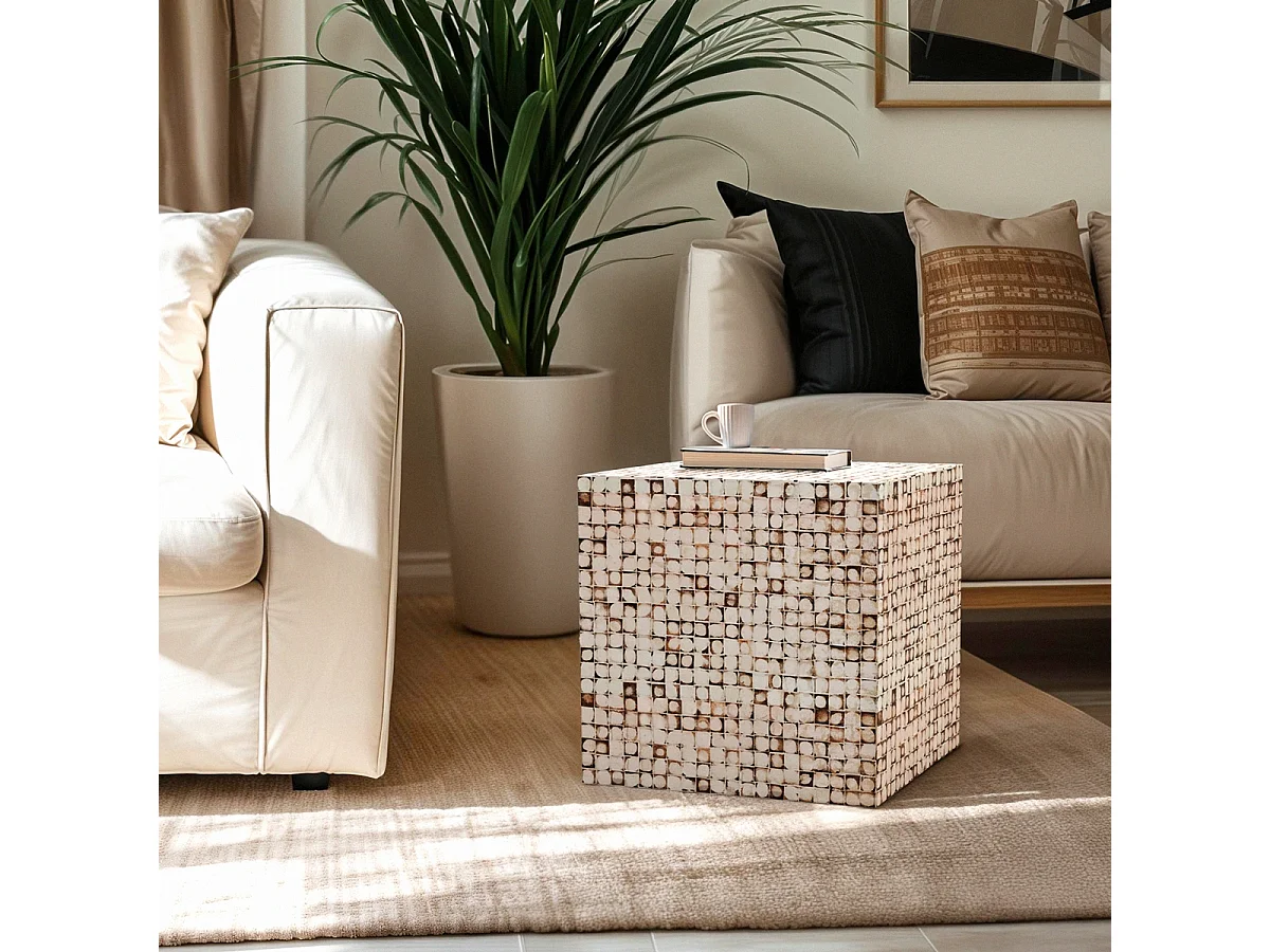 Tavolino quadrato da salotto contemporaneo in legno intarsiato Manju - Bianco