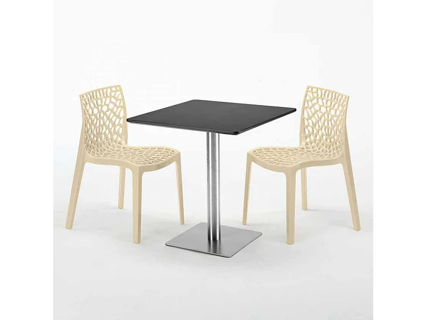 Tavolino Quadrato Nero 70x70 cm con 2 Sedie Colorate Paris Rum Raisin