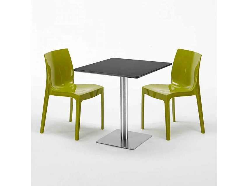 Tavolino Quadrato Nero 70x70 cm con 2 Sedie Colorate Ice Kiwi