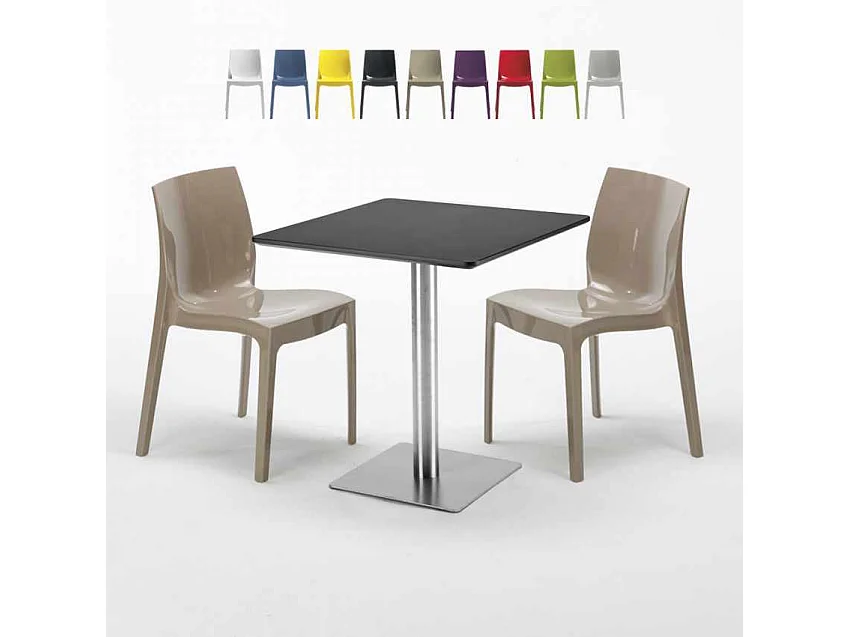 Tavolino Quadrato Nero 70x70 cm con 2 Sedie Colorate Paris Rum Raisin