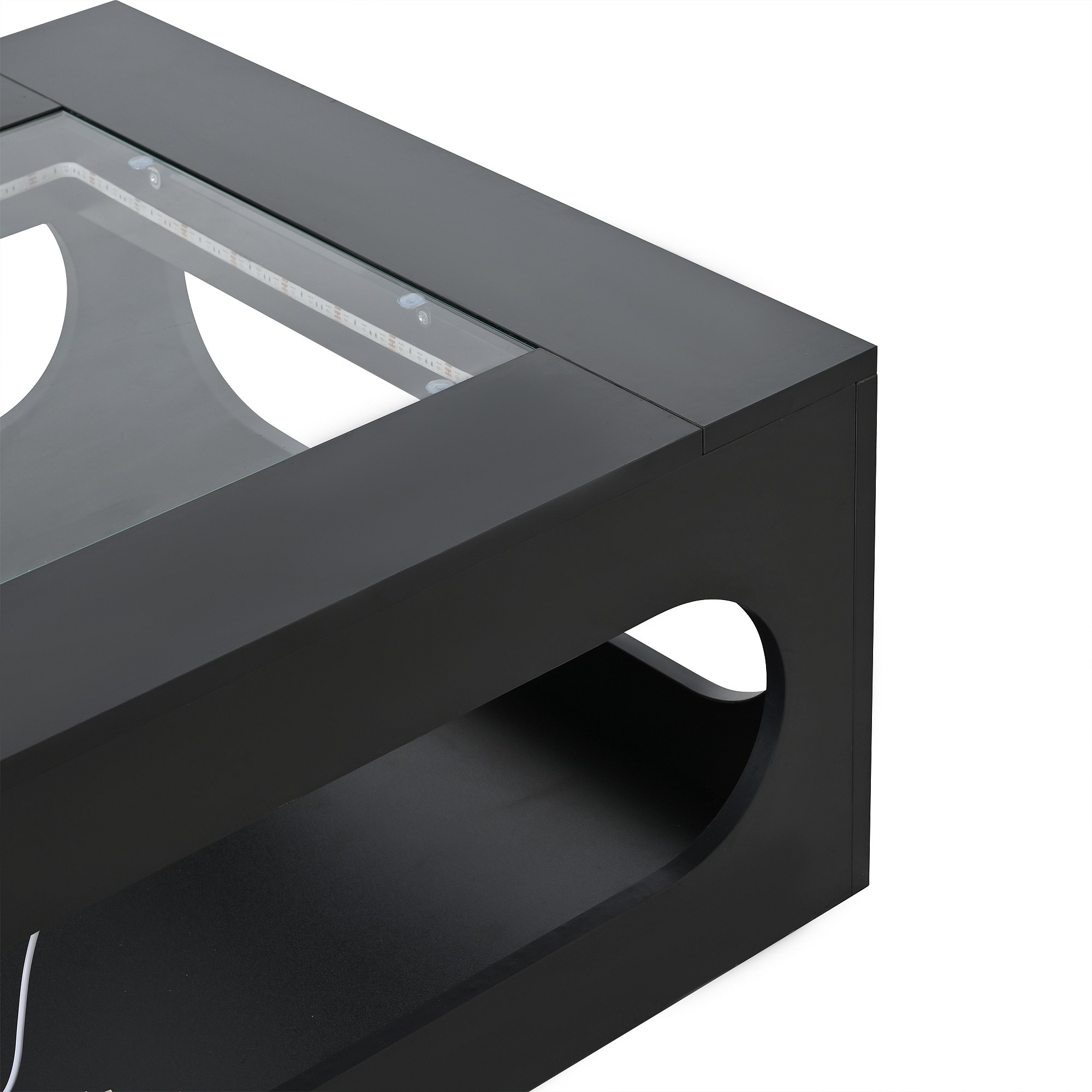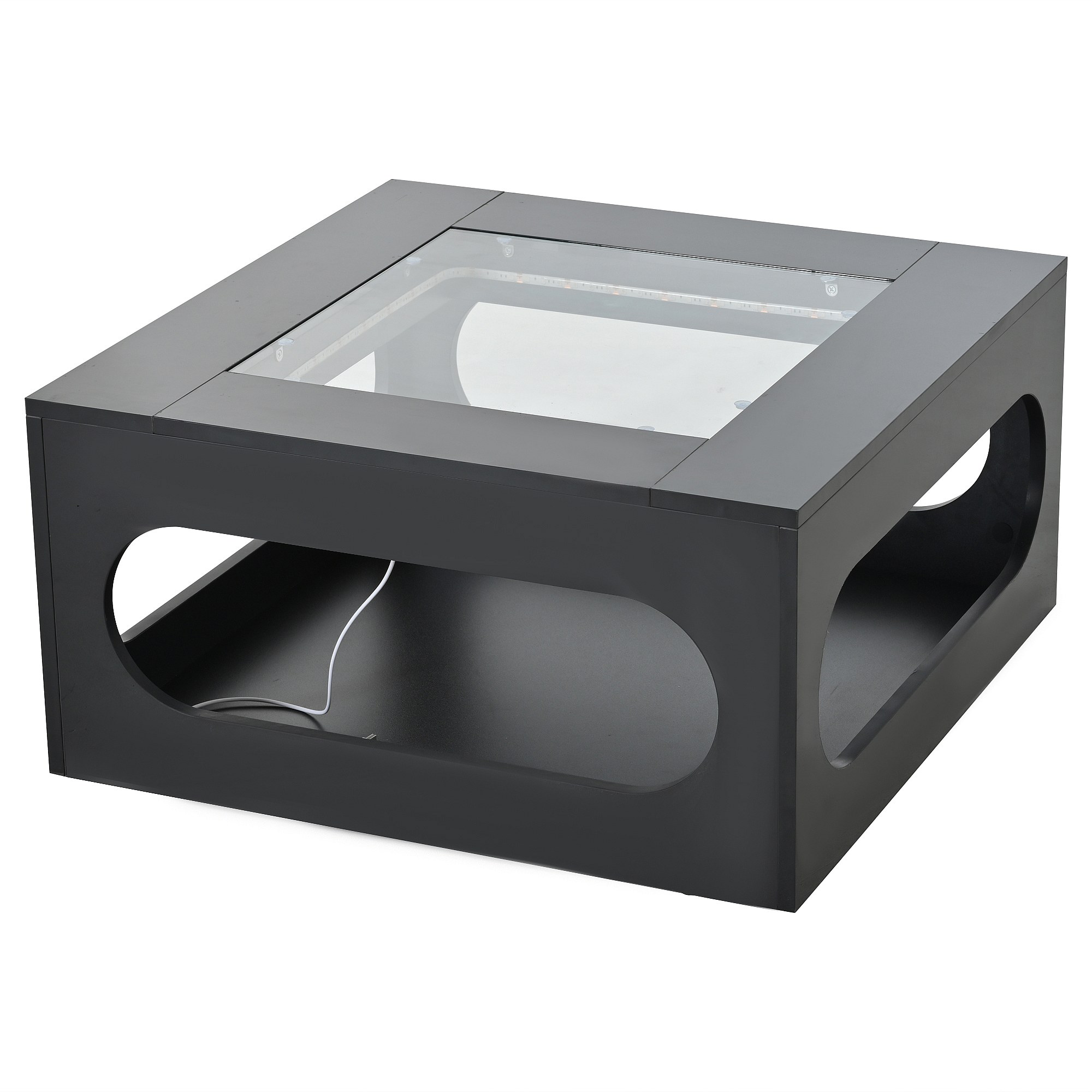 Tavolino quadrato con contenitore estraibile - Luci LED nella parte inferiore - Nero