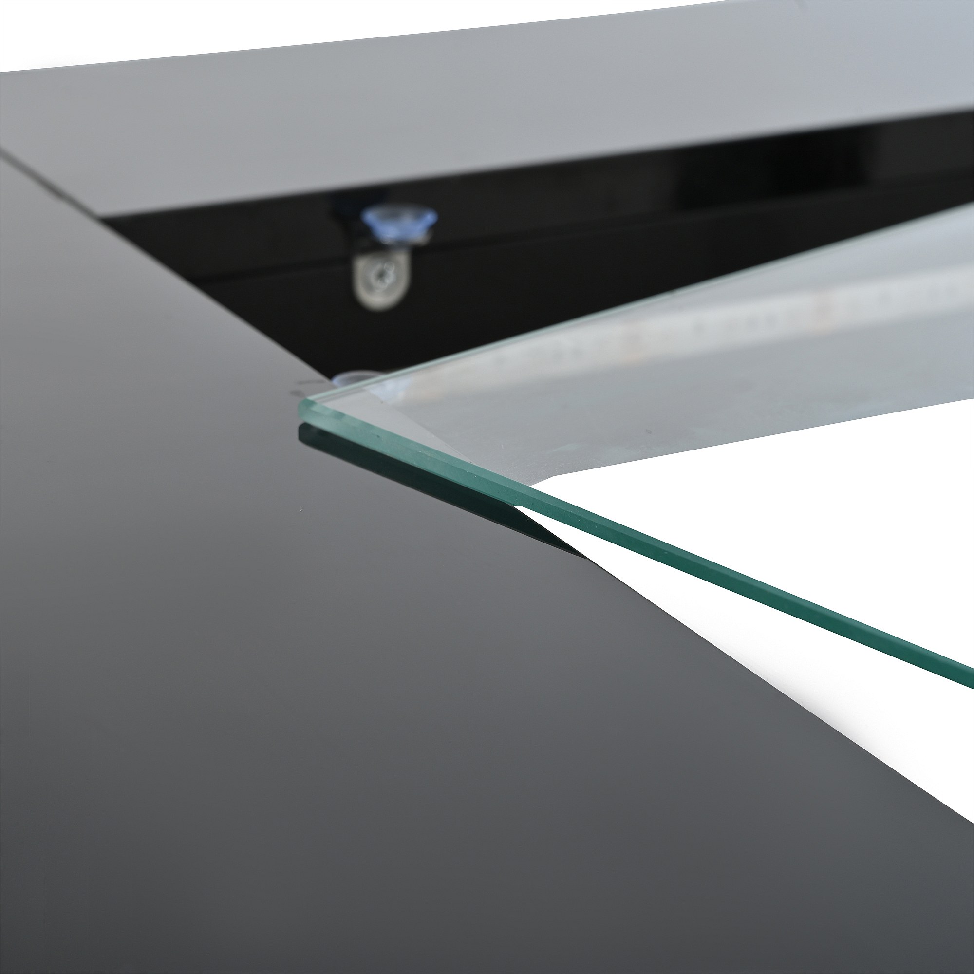Tavolino da caffè lucido - 70 x 70 x 36 cm - con LED + 2 cassetti - Truciolare + vetro temperato - nero