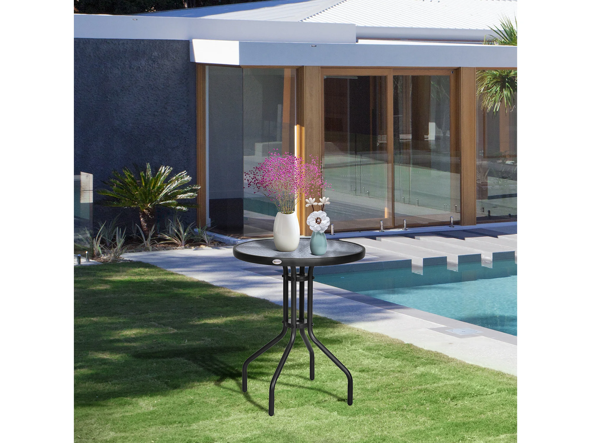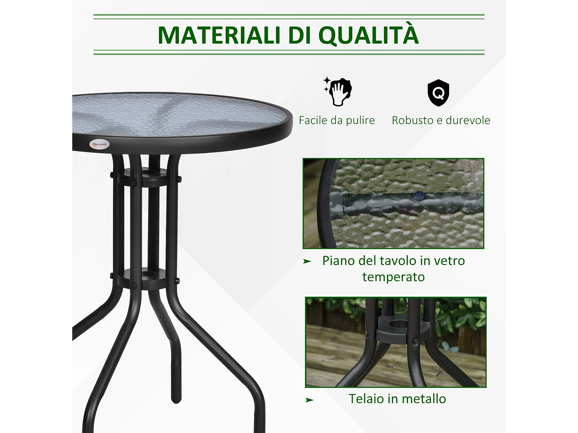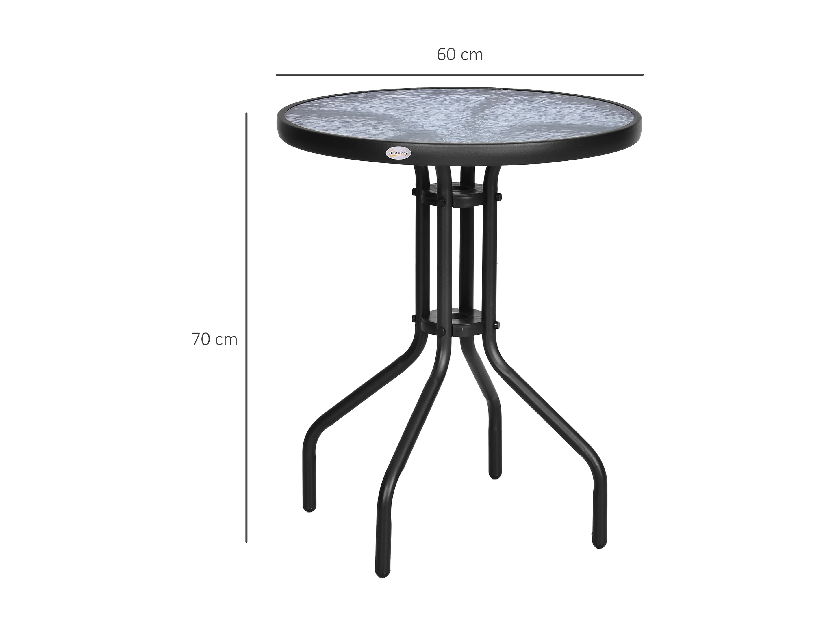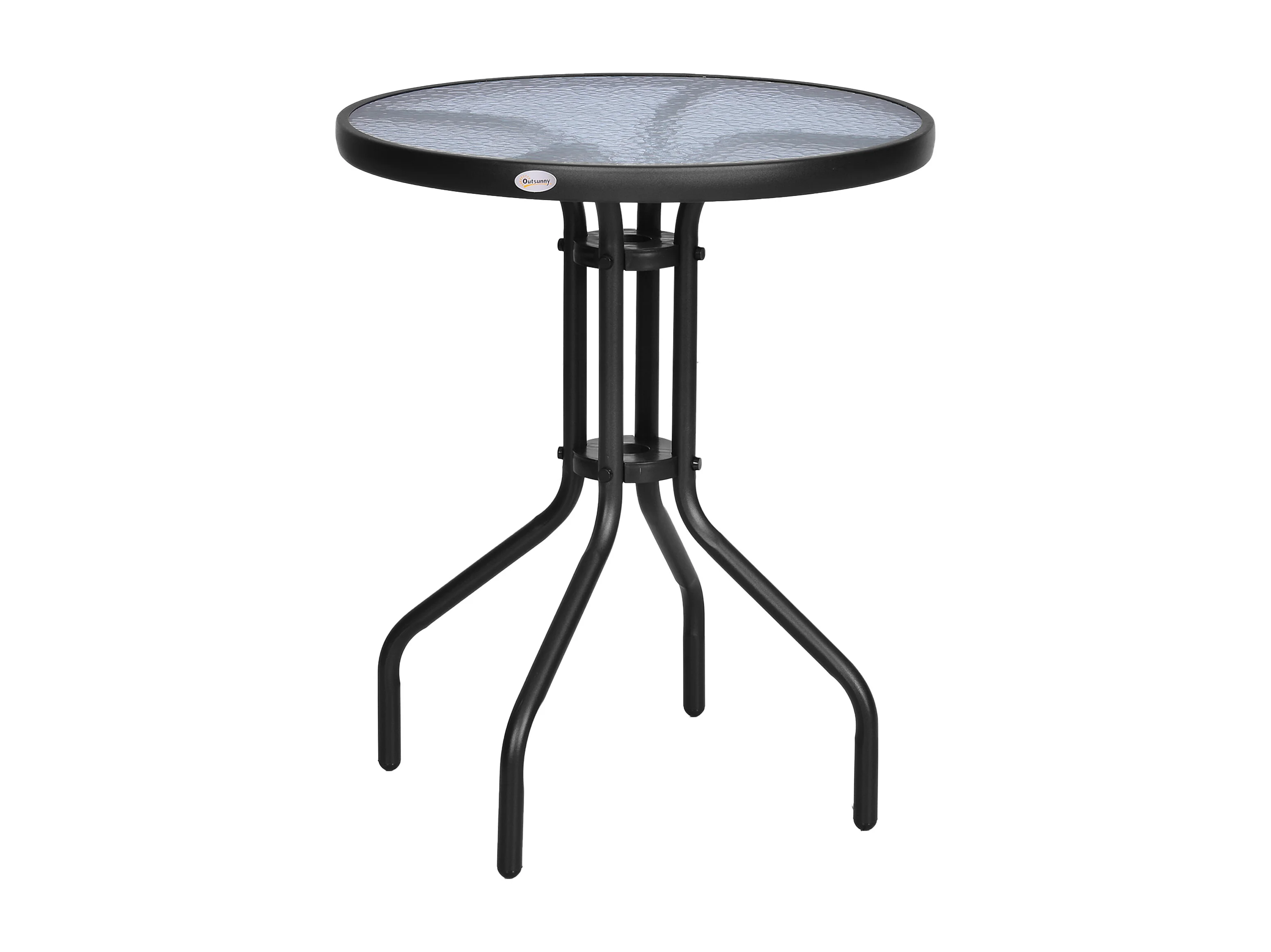 Tavolino Rotondo da Giardino con Piano in Vetro Temperato Nero