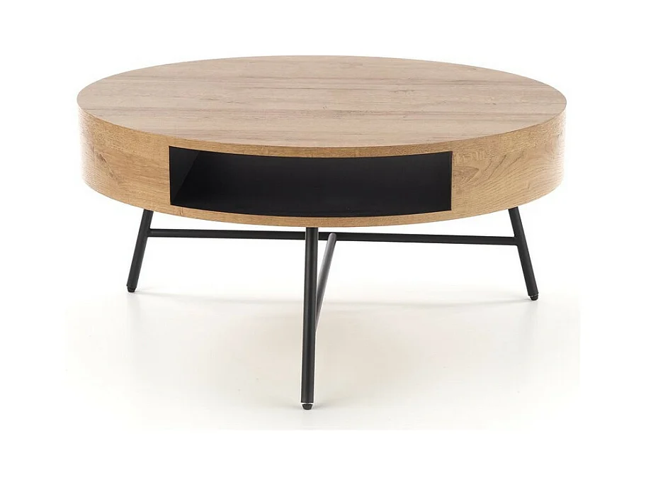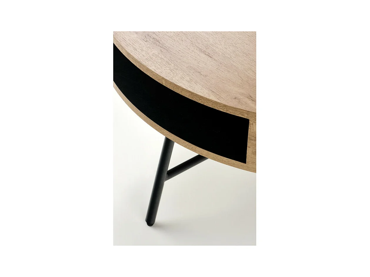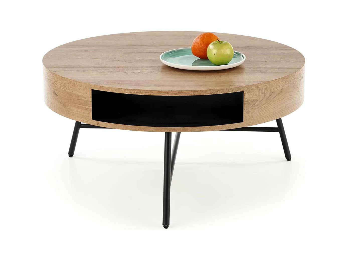 Tavolino rotondo di 80 cm di diametro in rovere naturale con struttura in metallo nero TINIA L