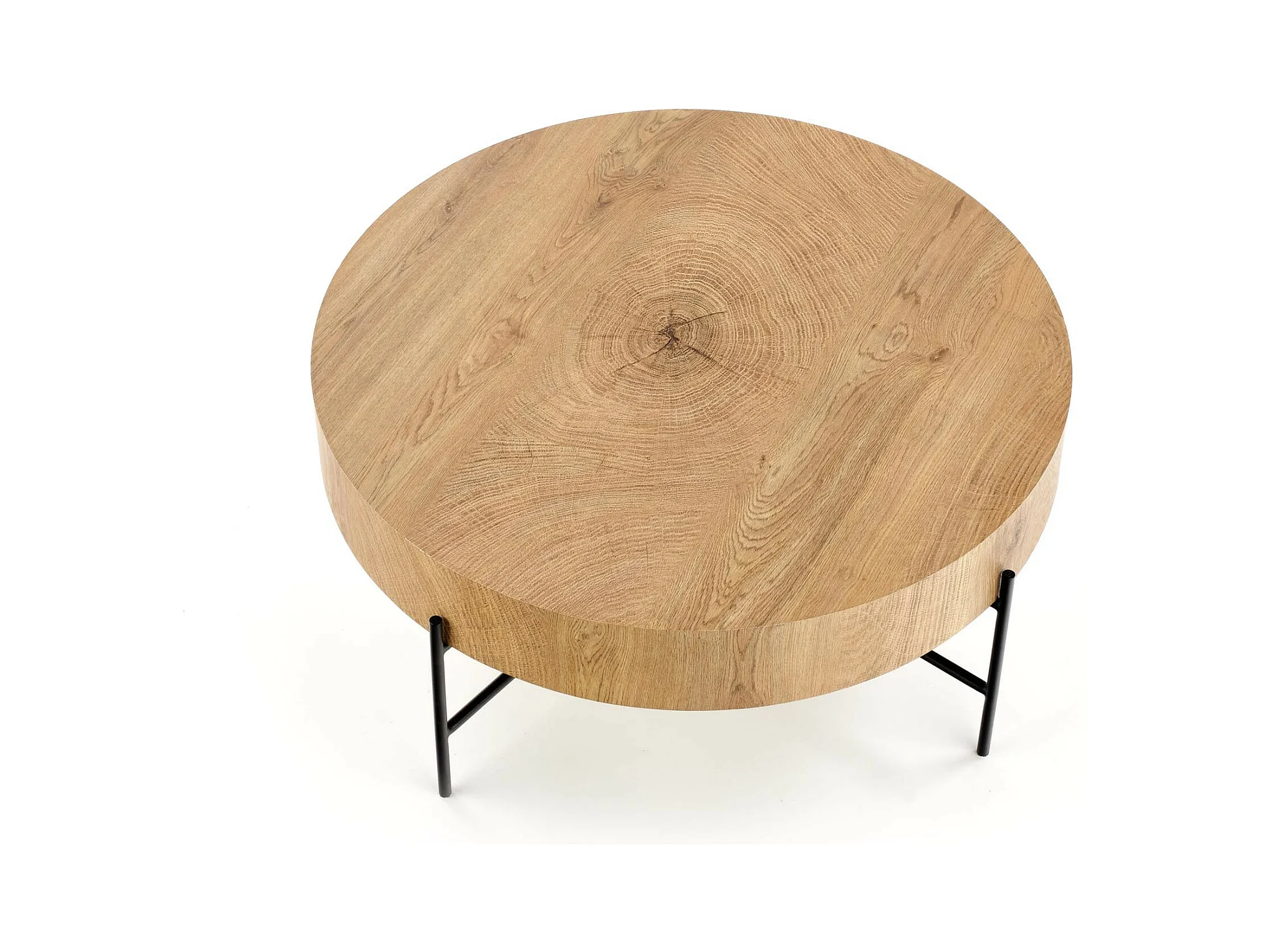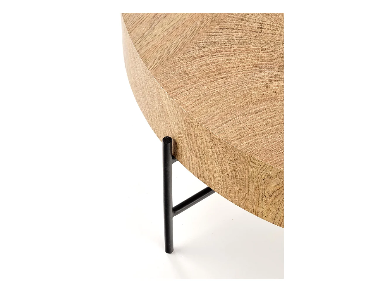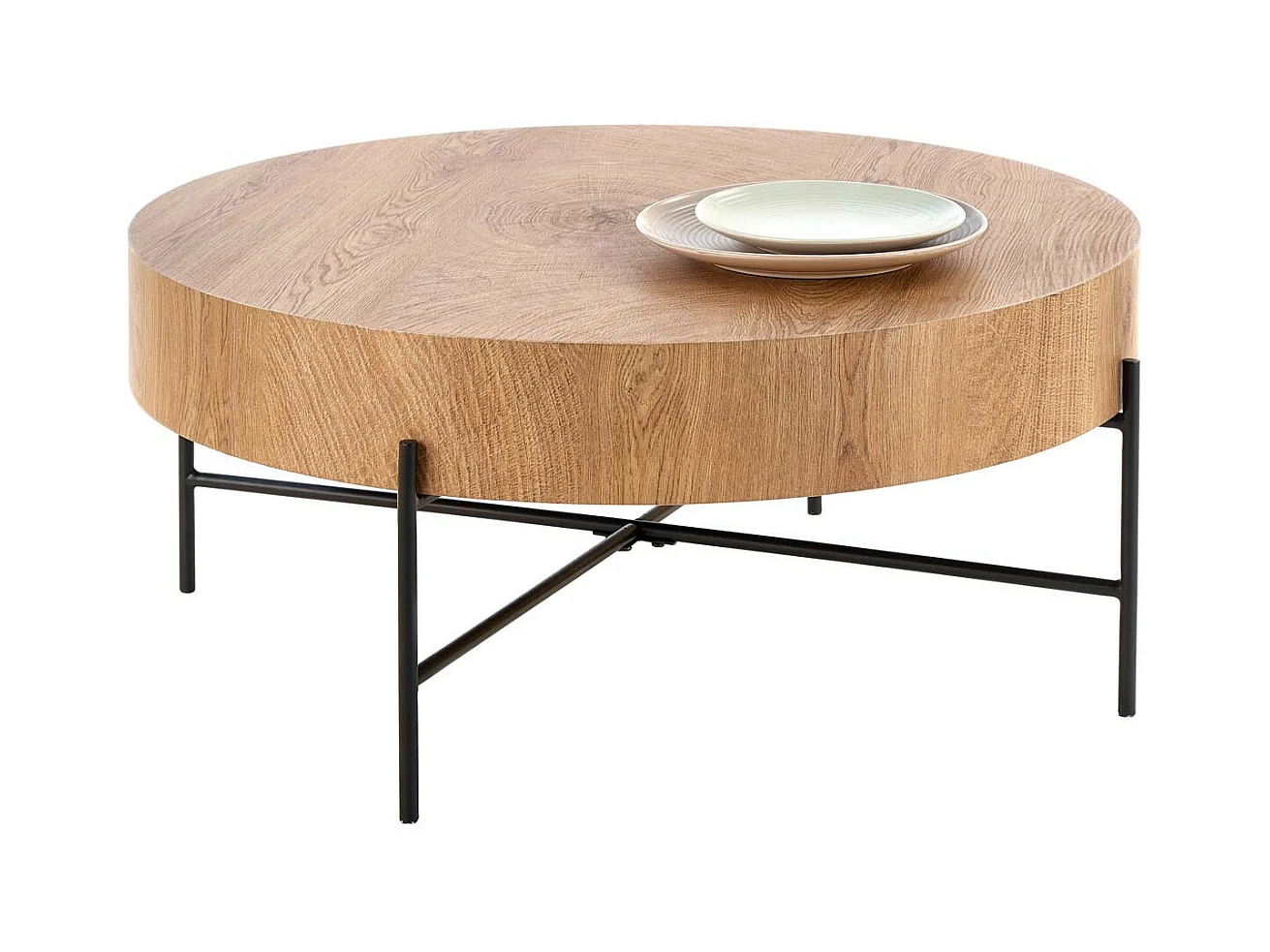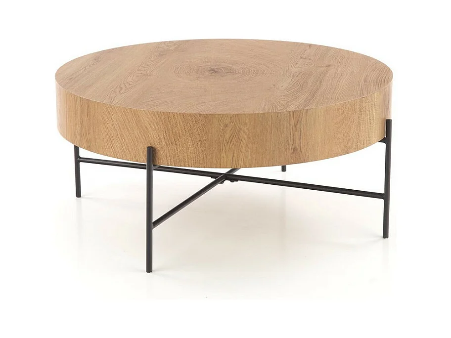Tavolino rotondo di 80 cm di diametro in rovere naturale con struttura in metallo nero TINIA L