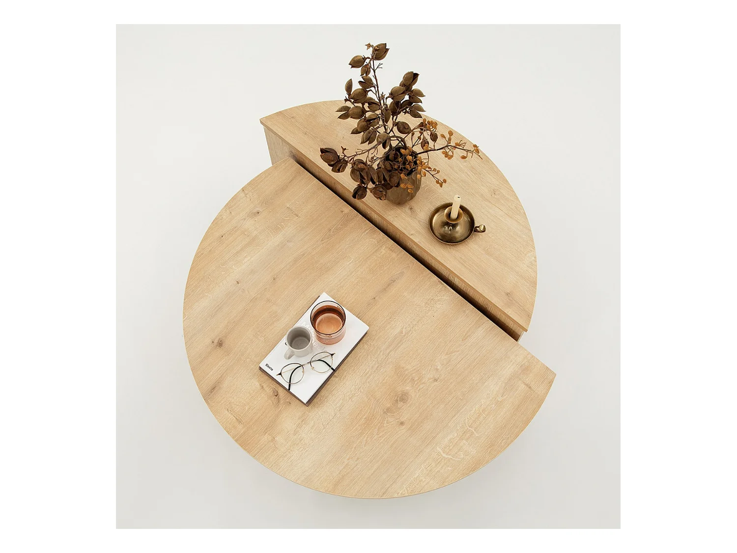 Tavolino rotondo duo effetto travertino da 90 cm con finitura naturale e design contemporaneo