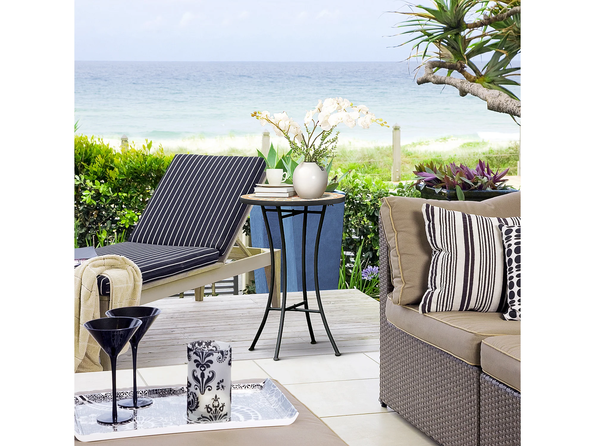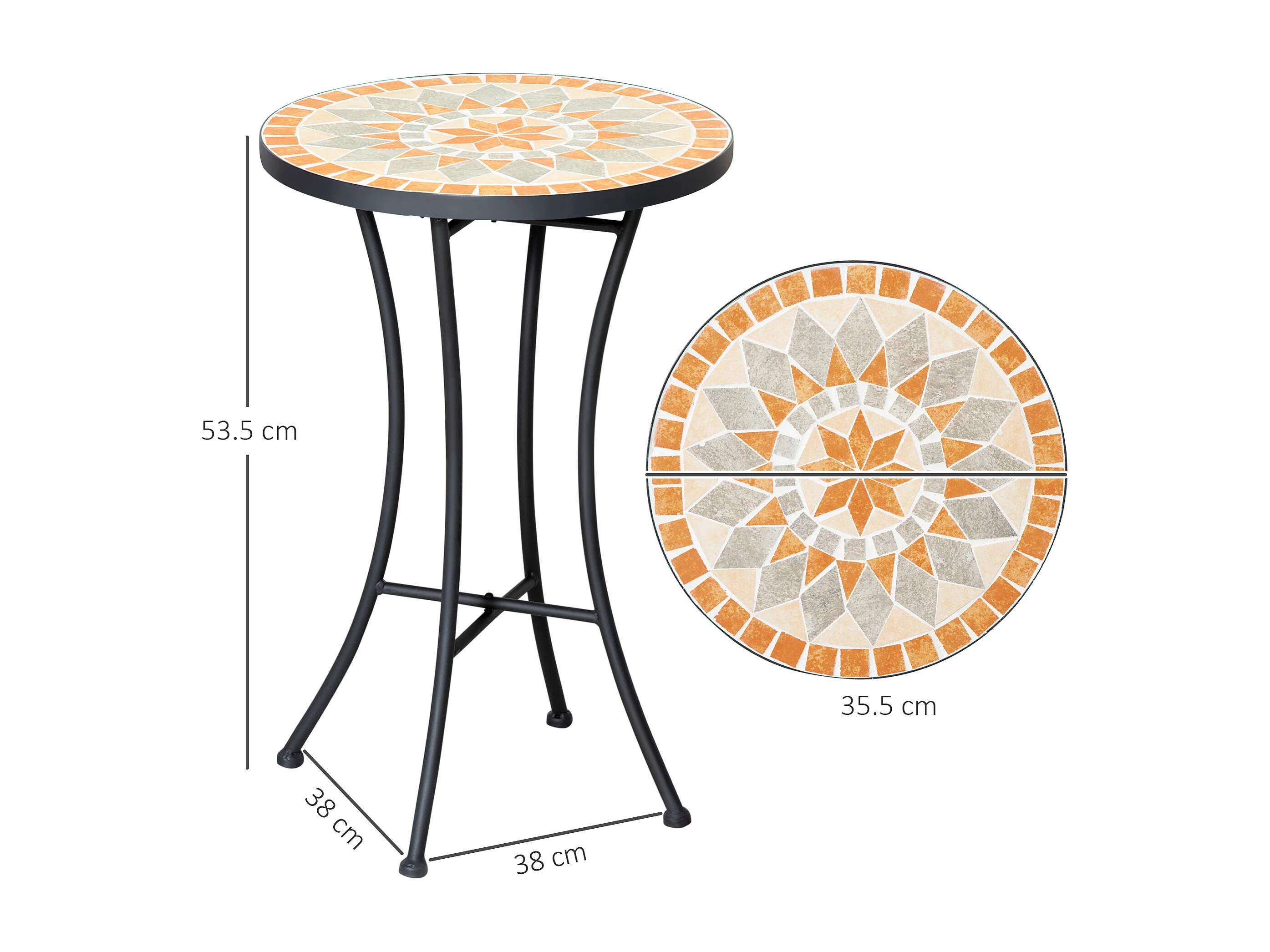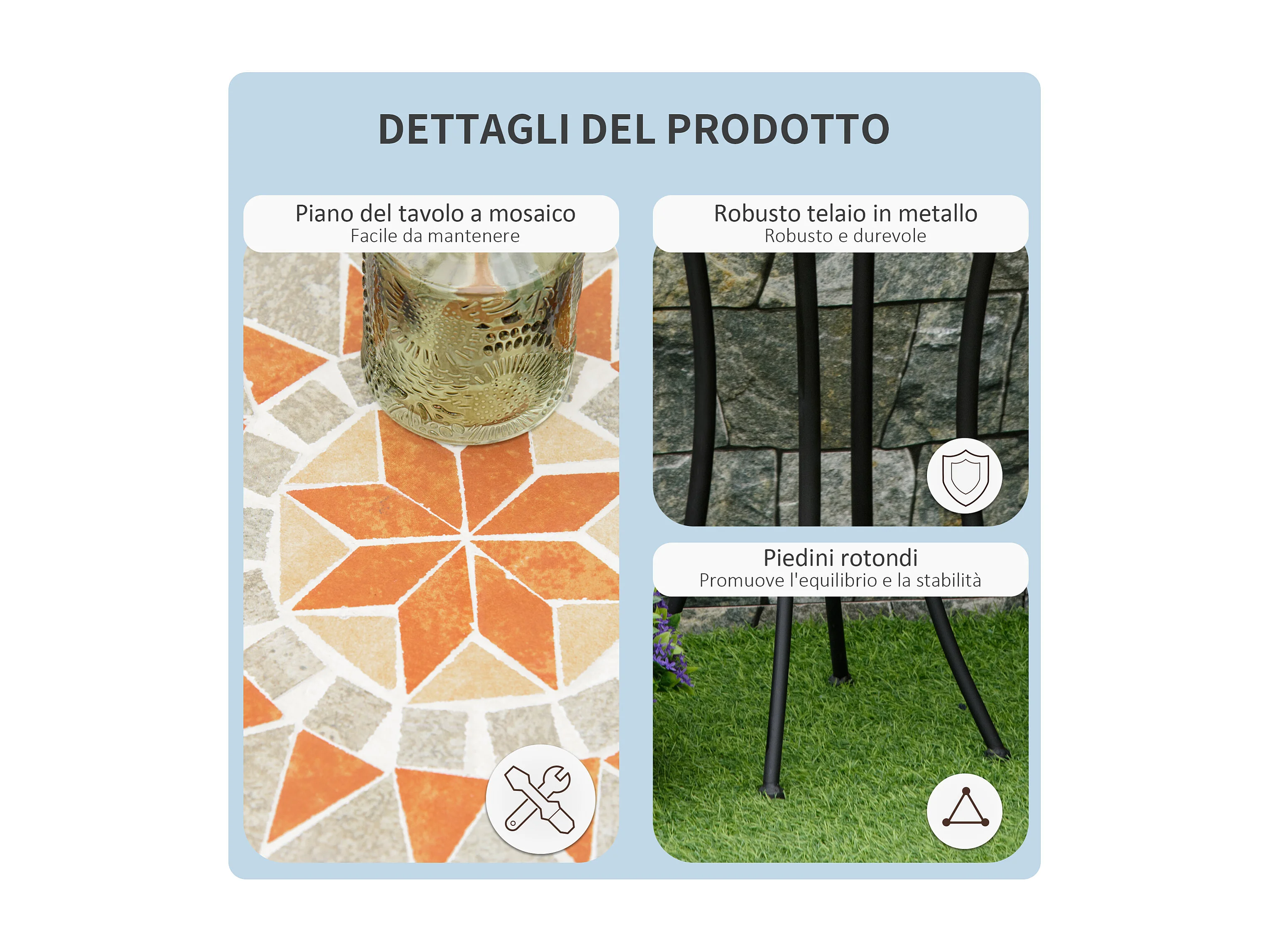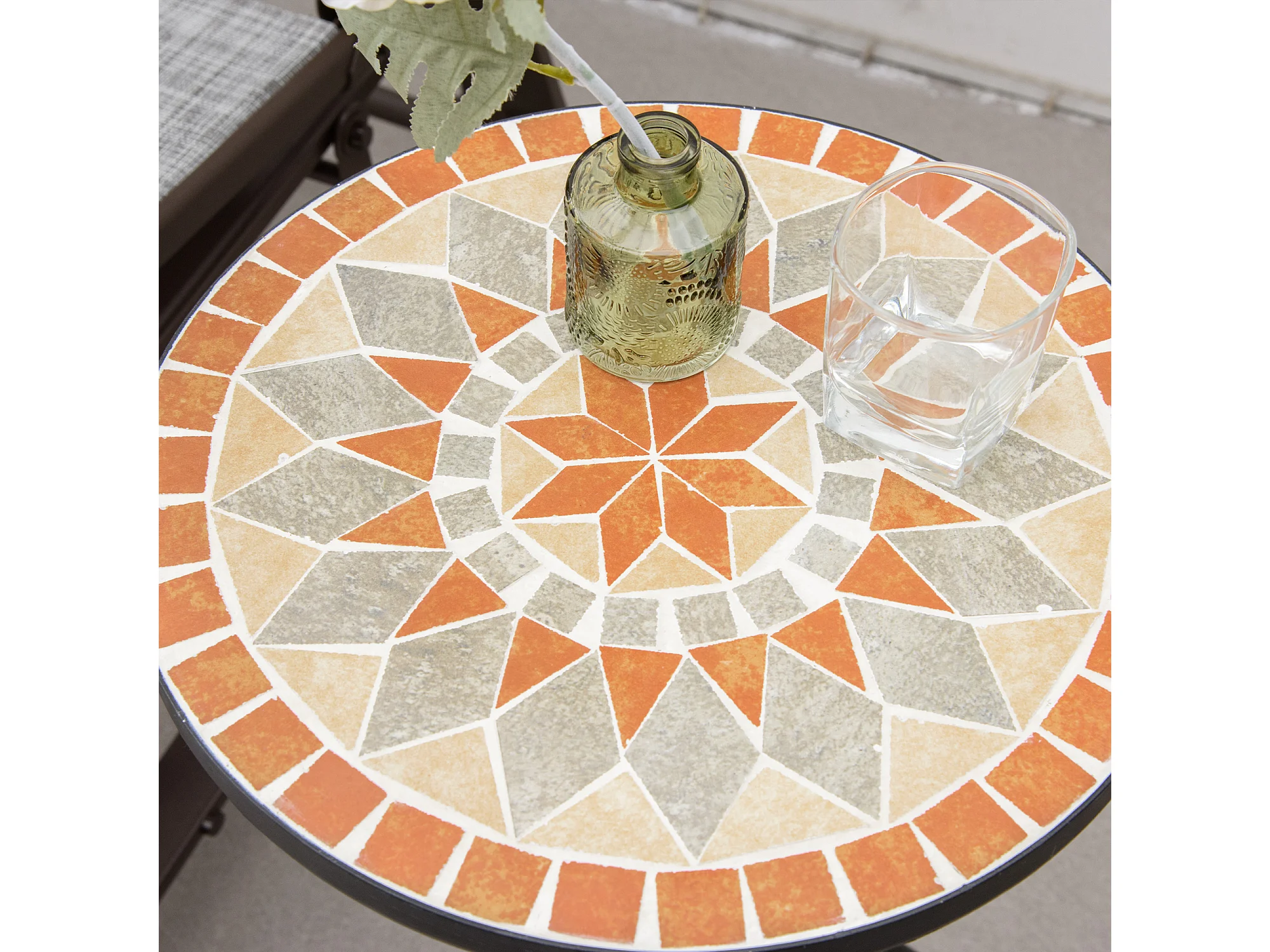Tavolino rotondo esterni con piano a mosaico multicolore