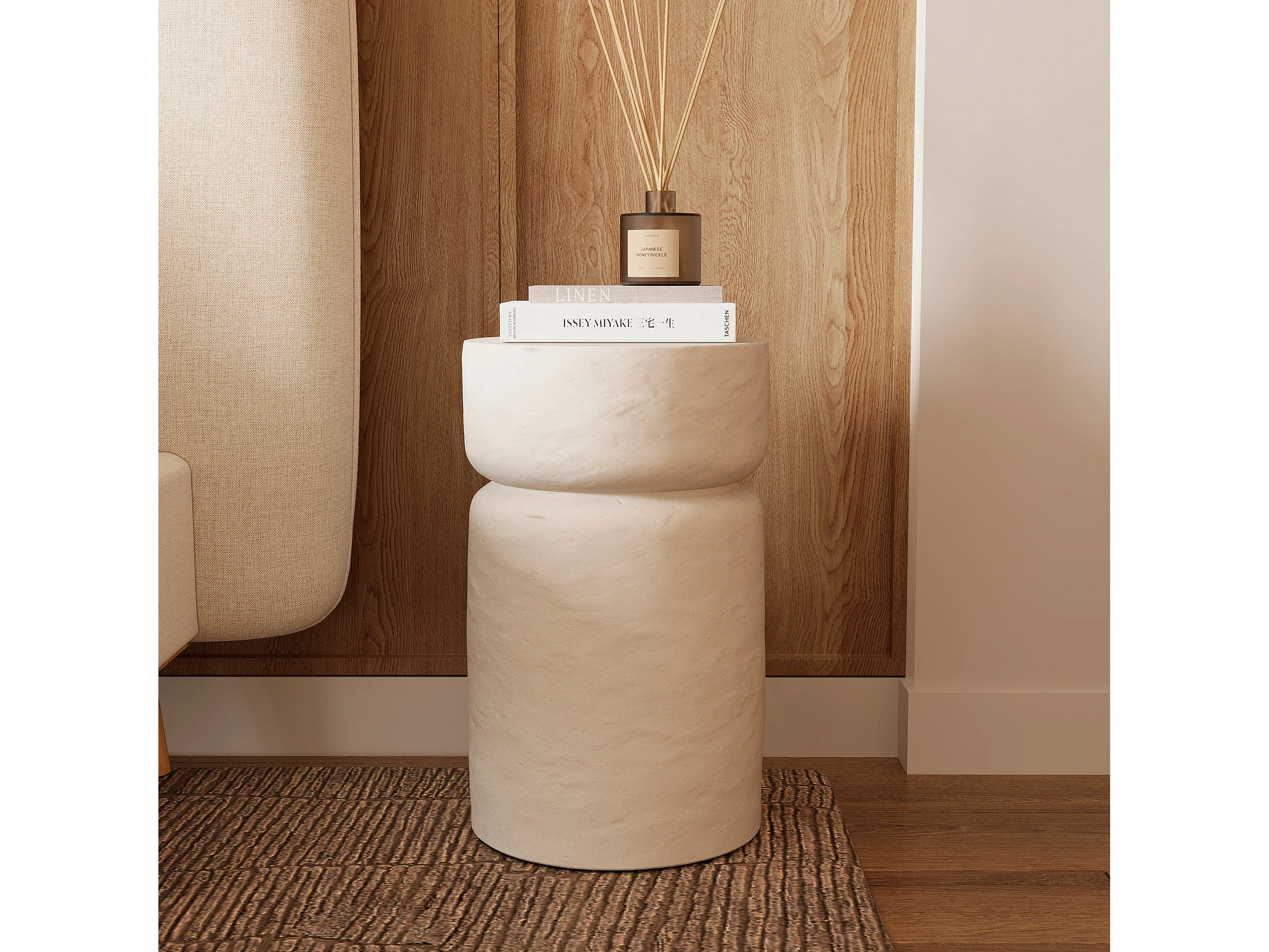 Tavolino rotondo bianco in fibra di argilla effetto cemento D35 cm - Santorini