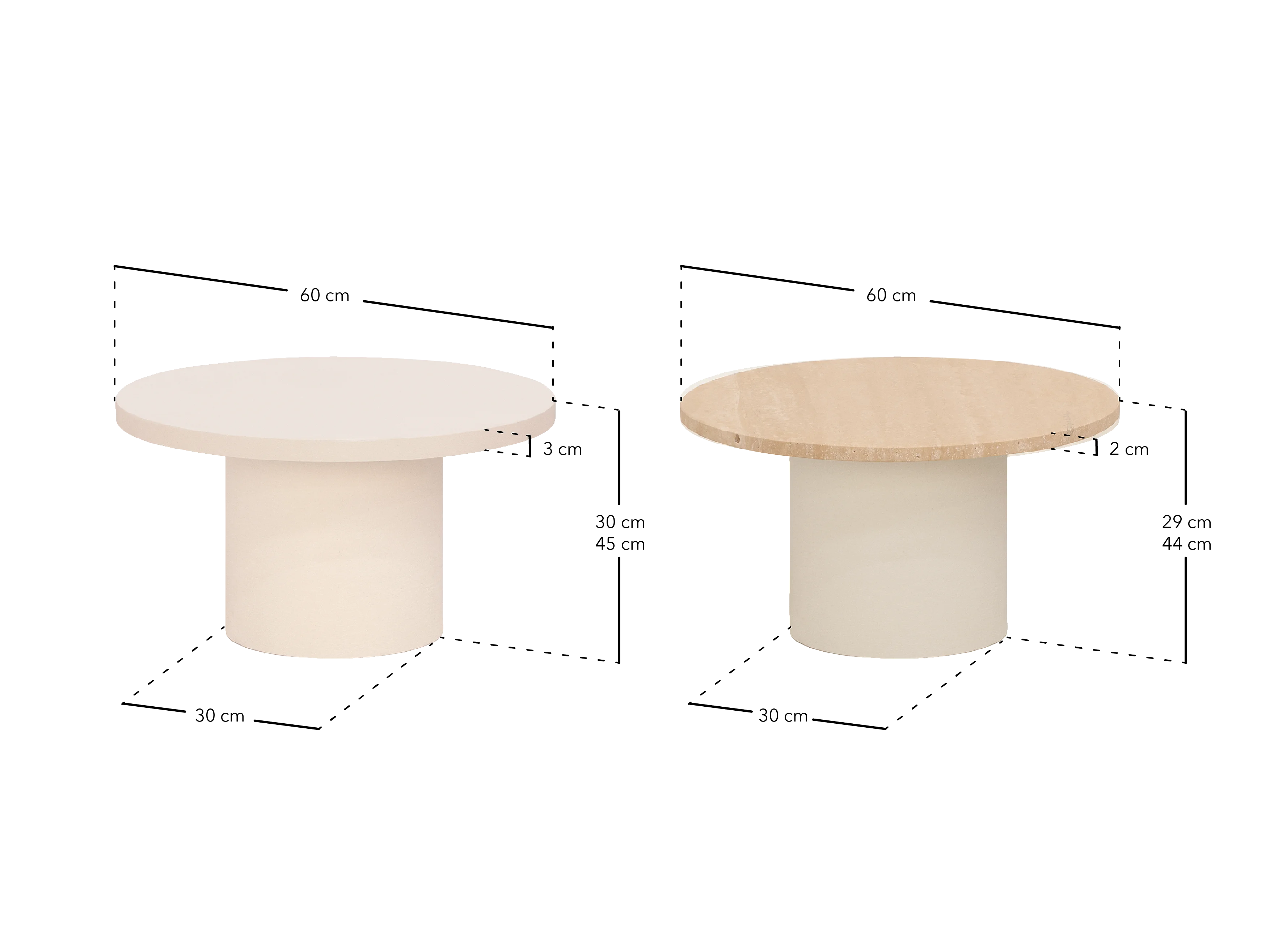 Tavolino rotondo in legno marrone e microcemento terracotta 60x48cm