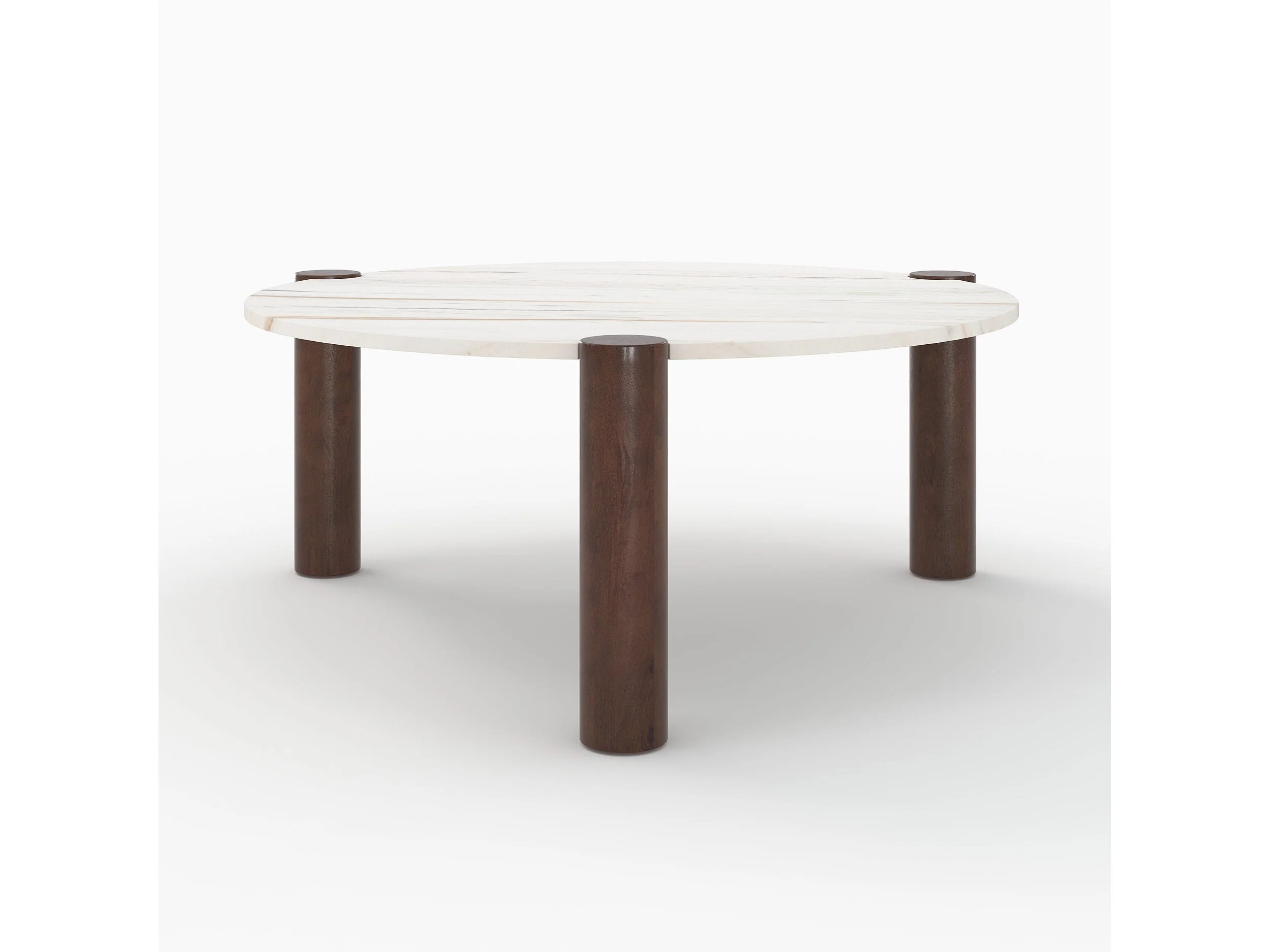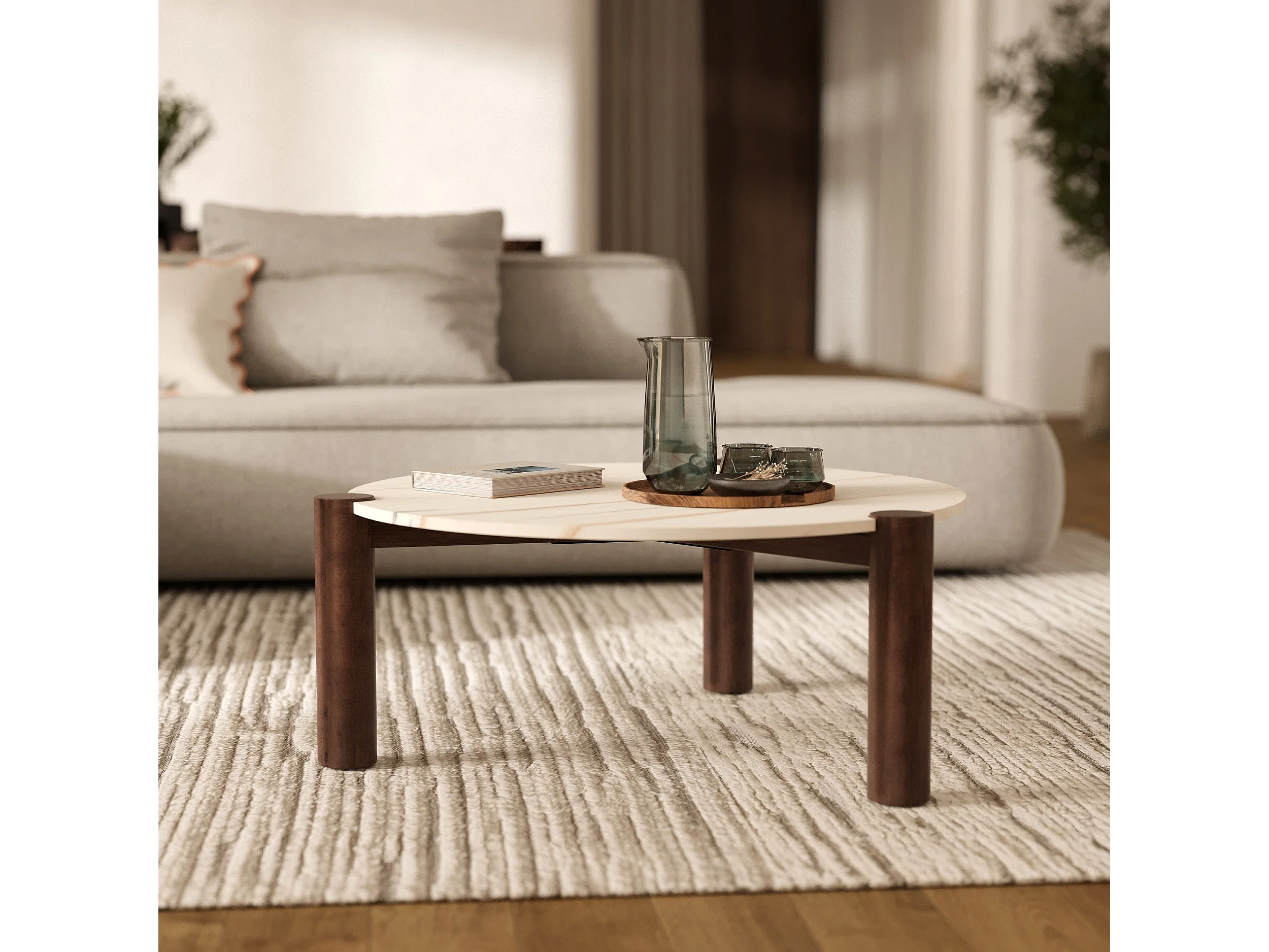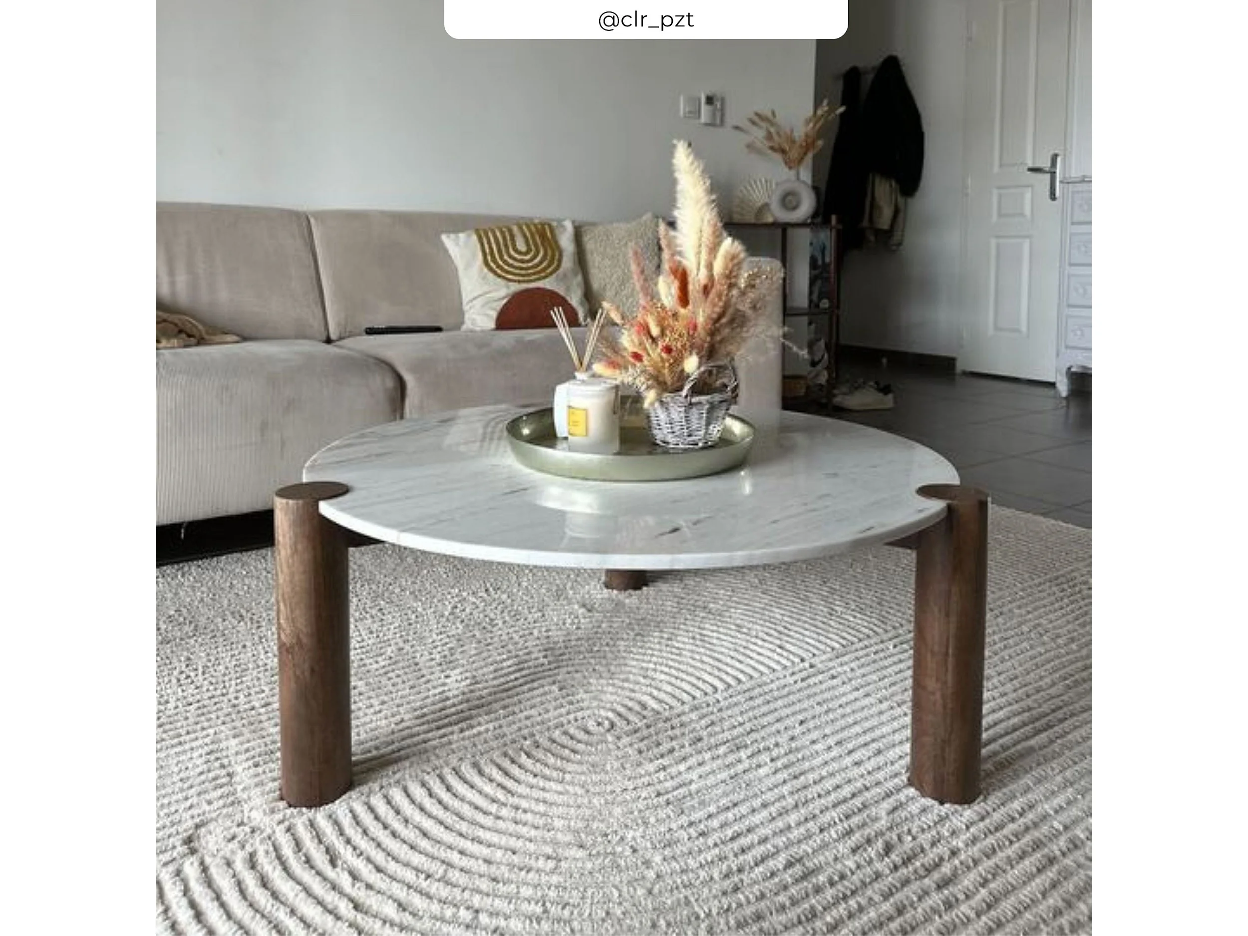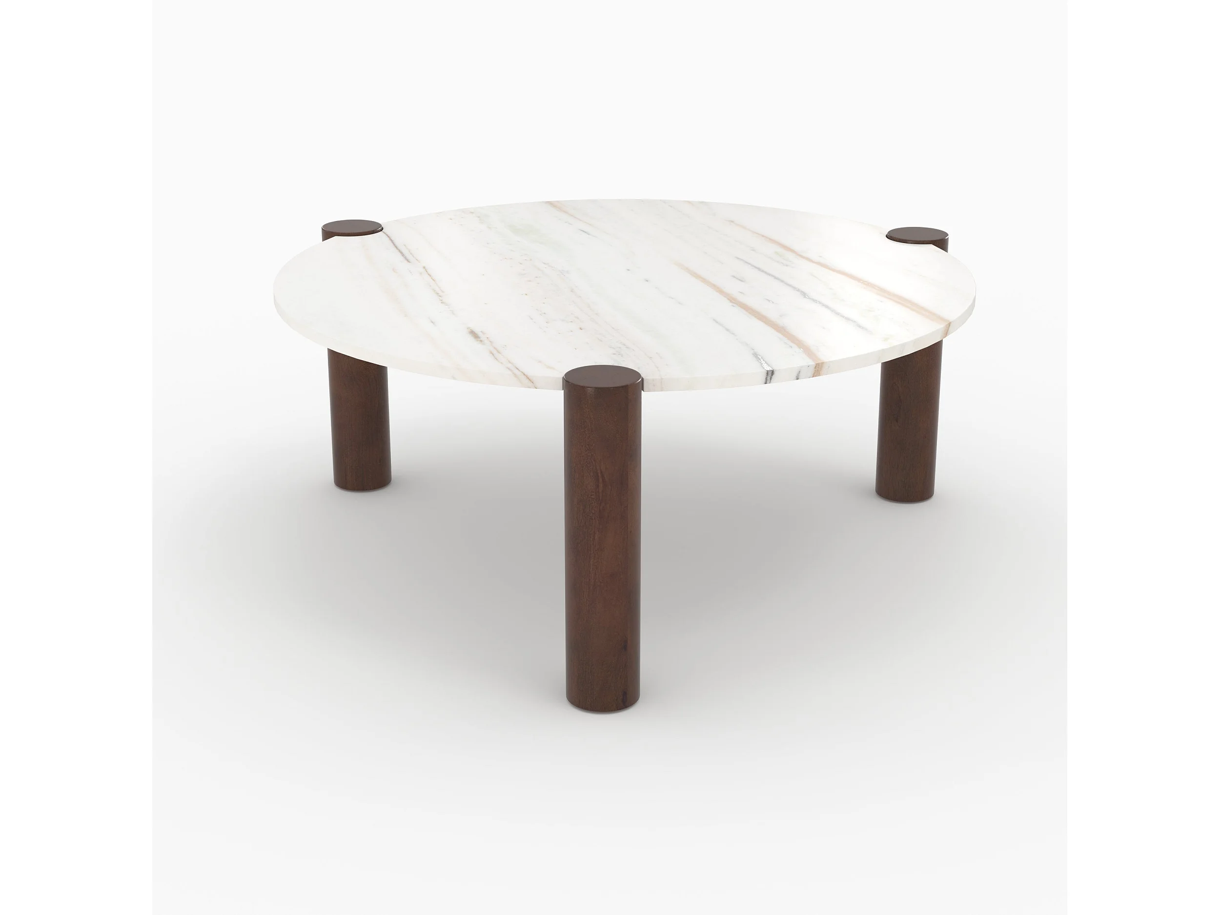 Tavolino rotondo in marmo e legno di mango D86 cm - Pauline