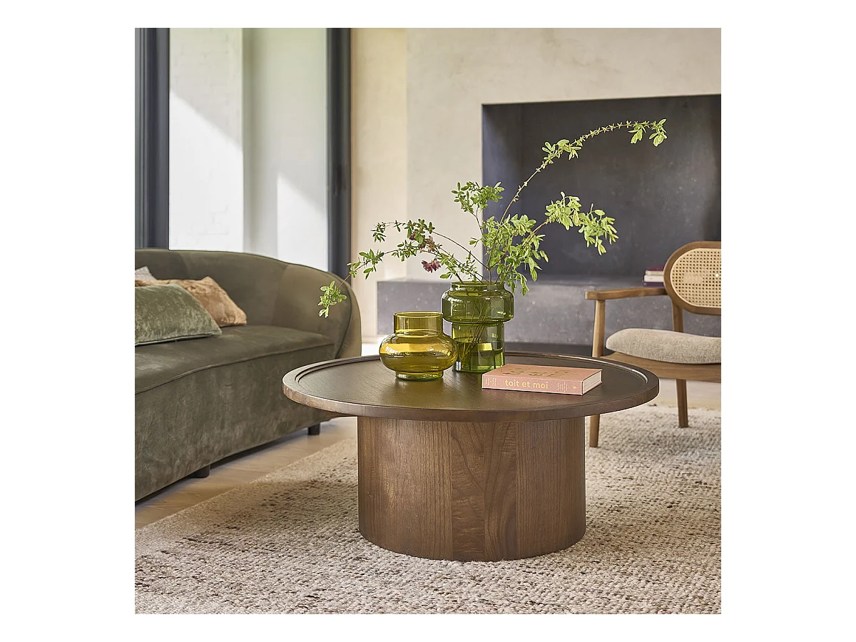 Tavolo basso rotondo in legno massello in tono marrone chiaro Ø80x30,2cm - BLOOM - DECOWOOD