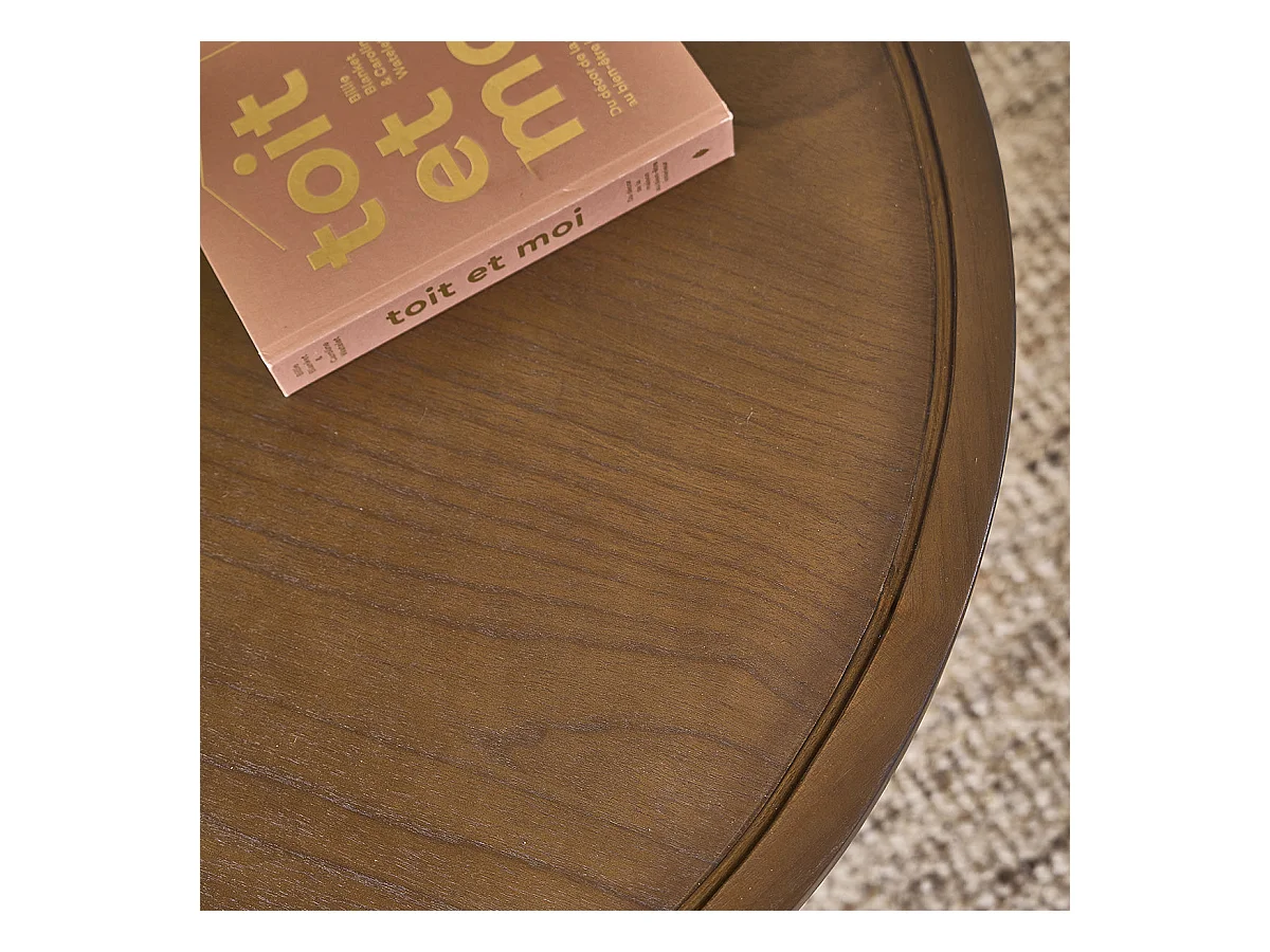 Tavolino rotondo in mindi massello con finitura in noce Ø 100 cm