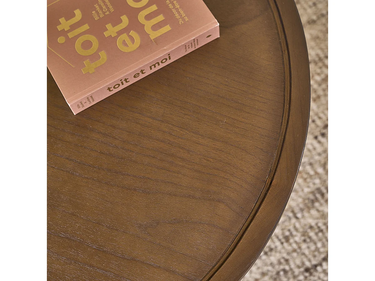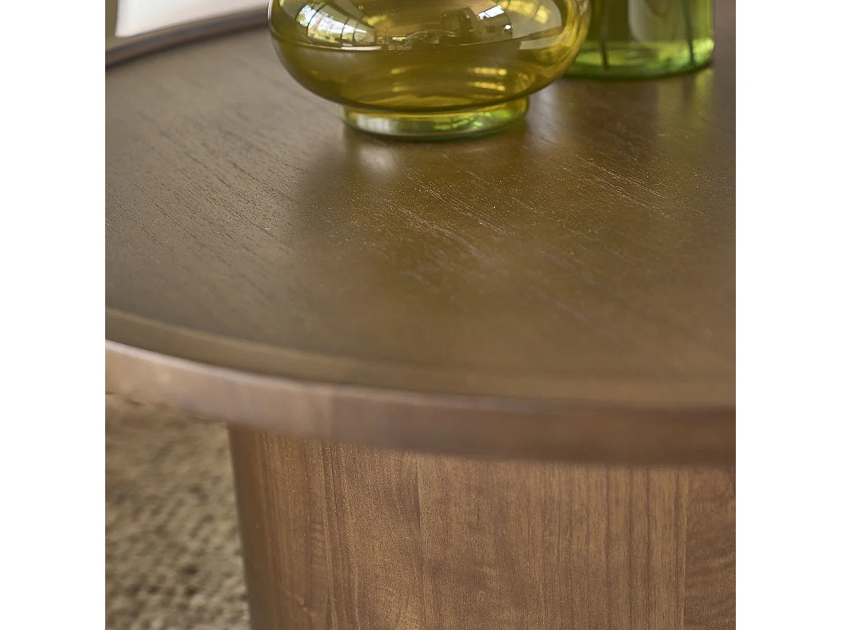 Tavolino rotondo in mindi massello con finitura in noce Ø 100 cm
