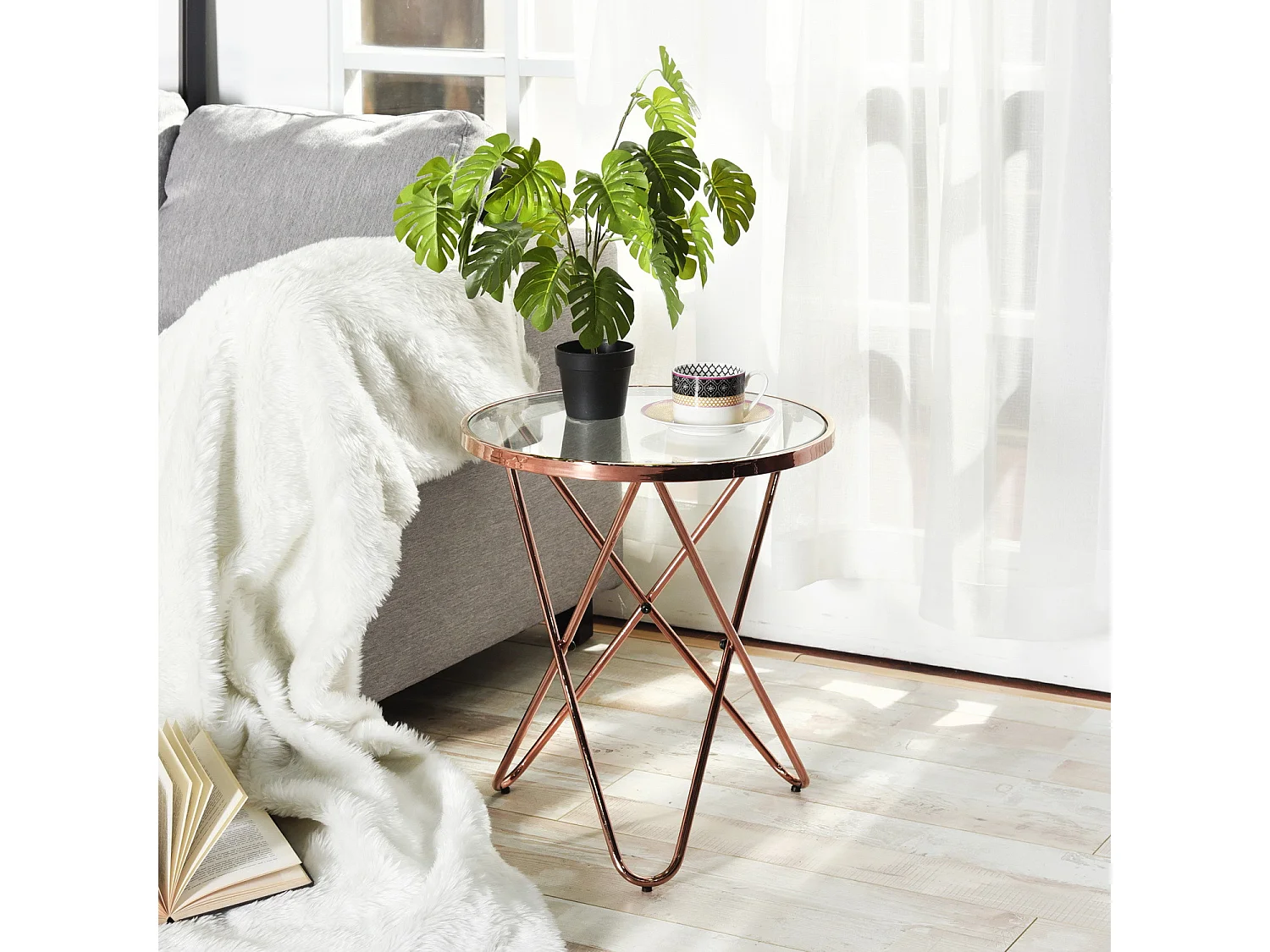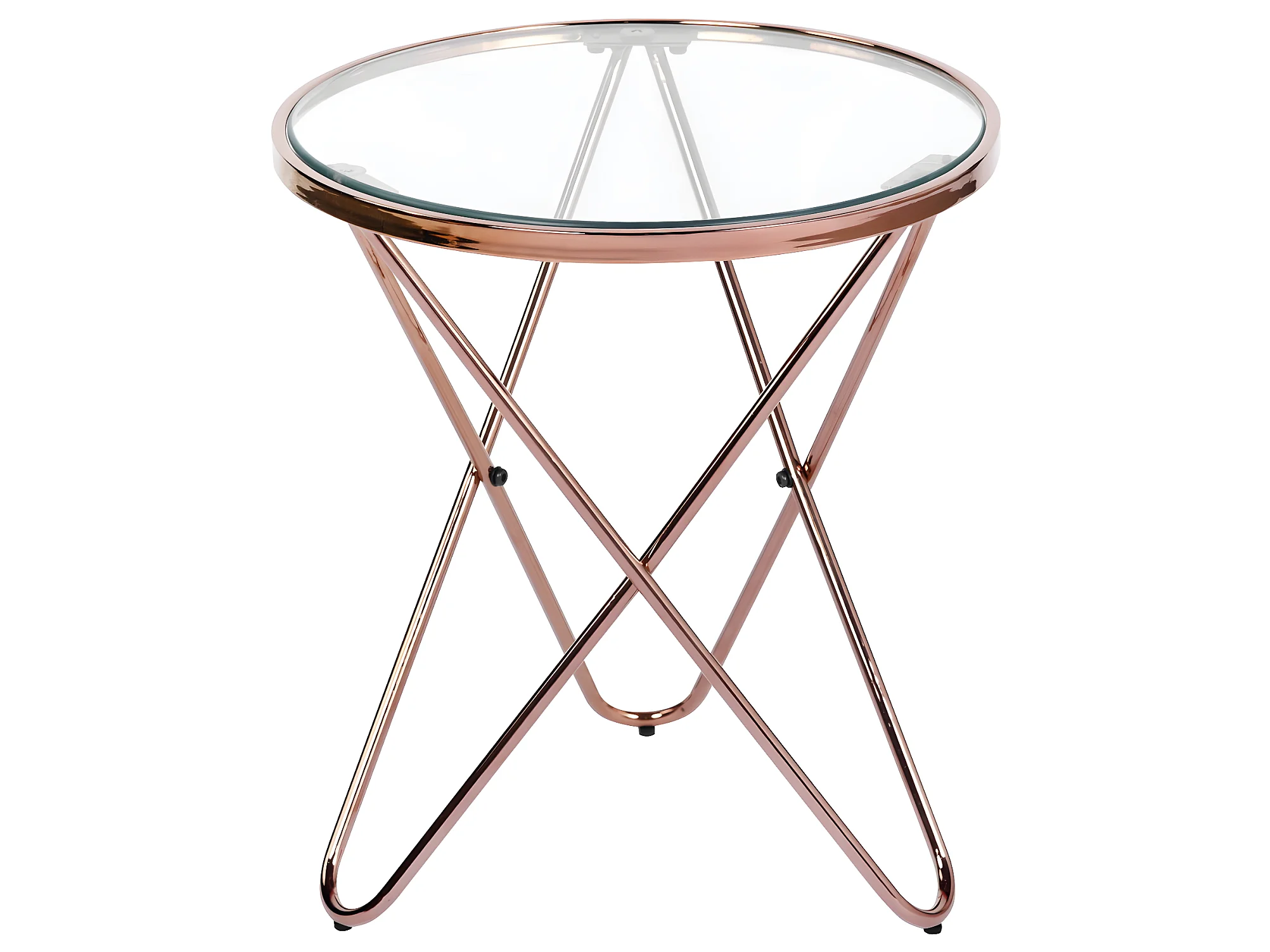 Tavolino rotondo in vetro temperato gambe in metallo oro rosa CANALES PICCOLA GAMBA ORO