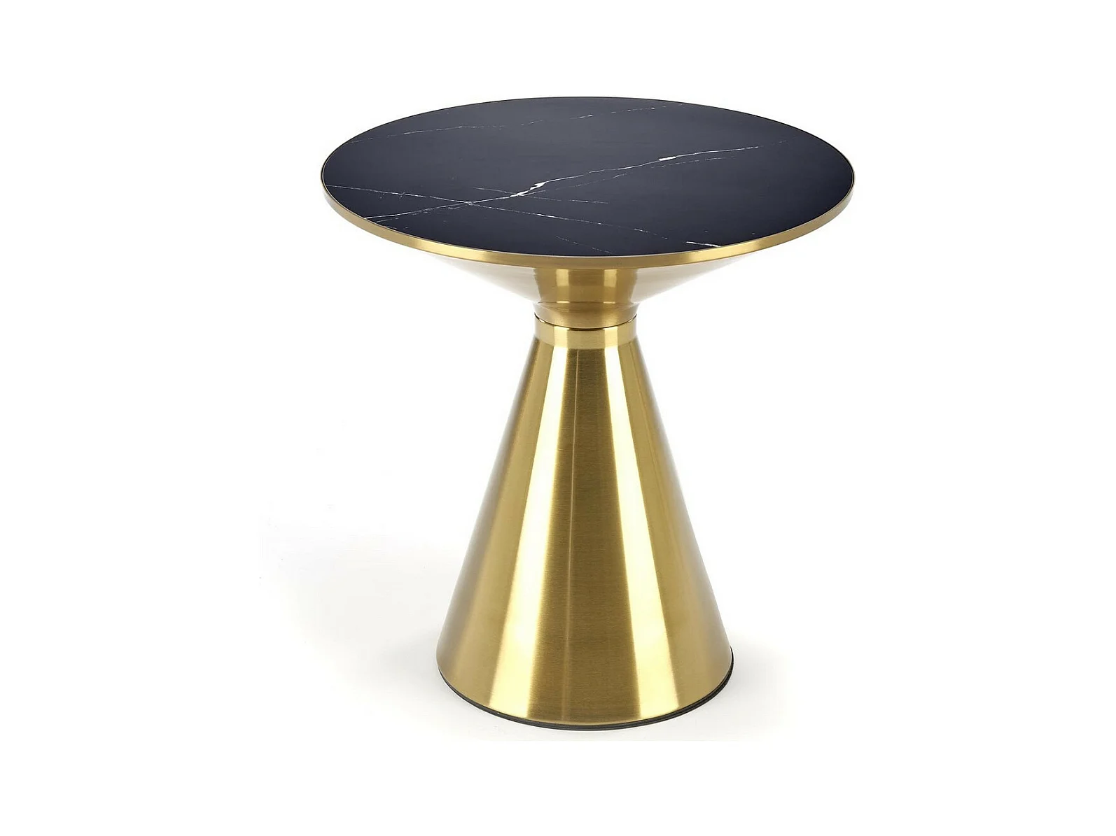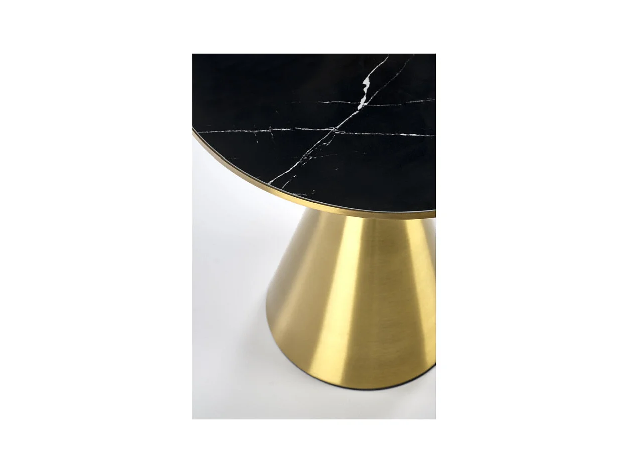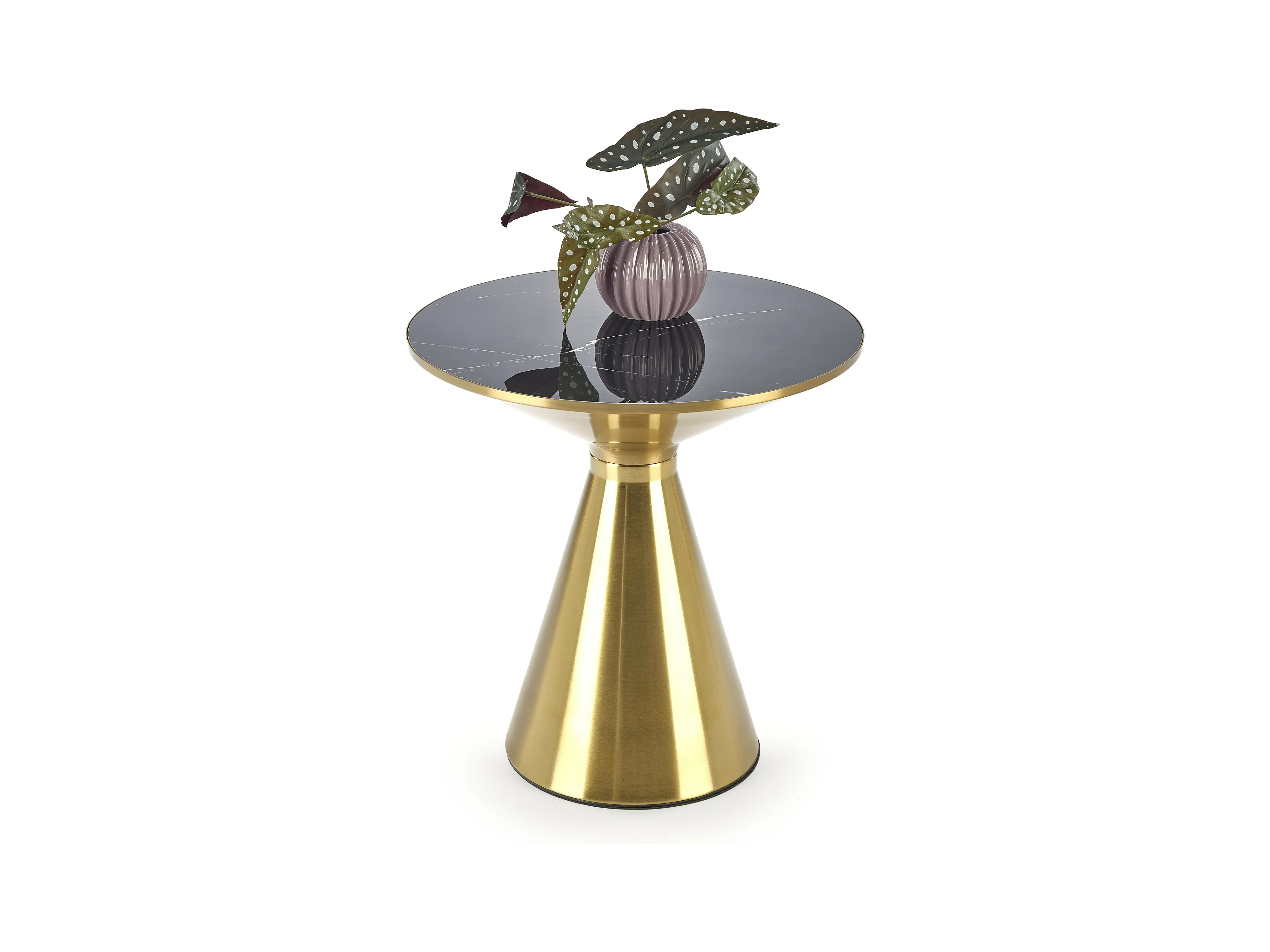 Tavolino di design Melba con piano in marmo di 60 cm di diametro e struttura in acciaio dorato
