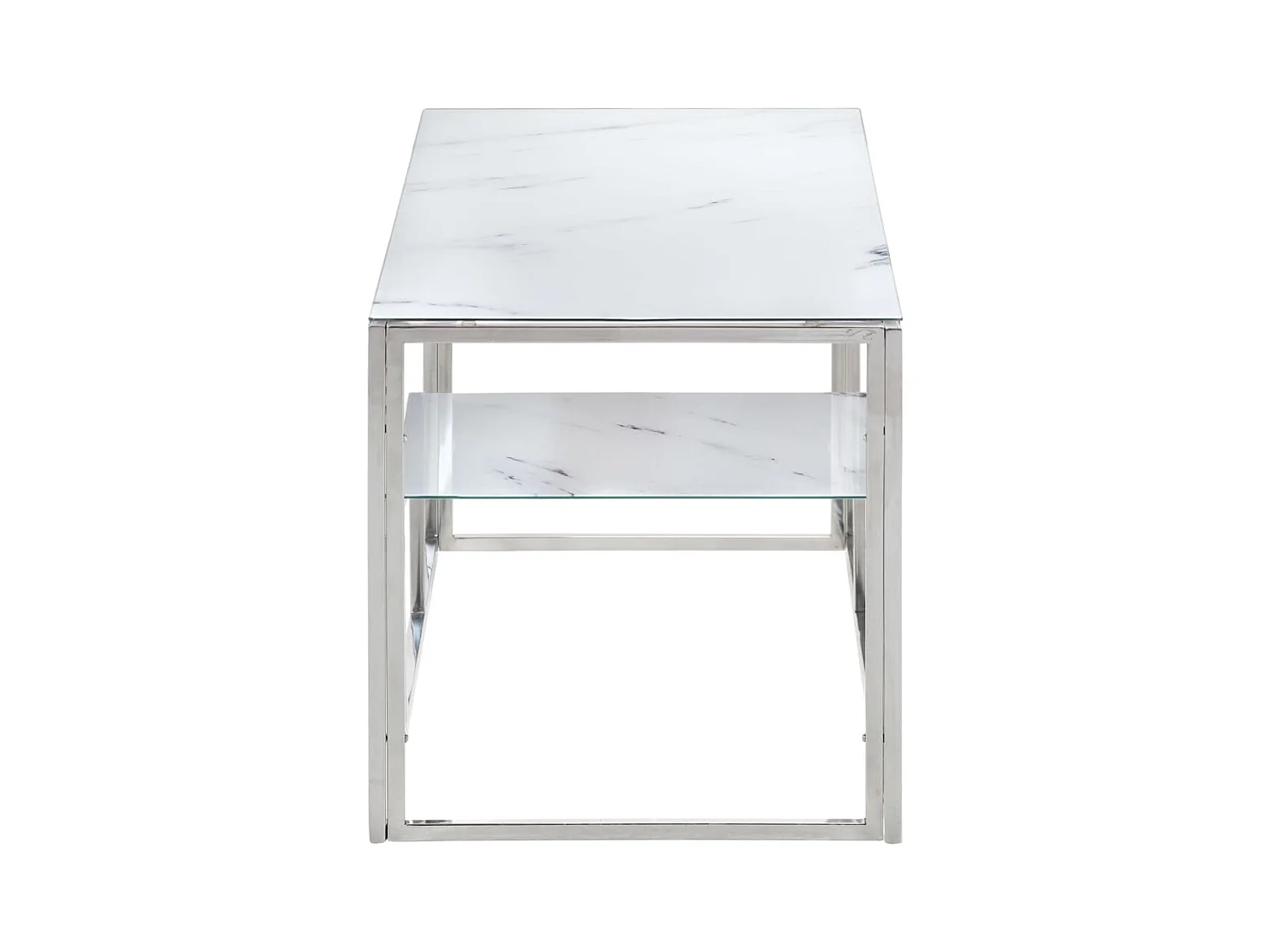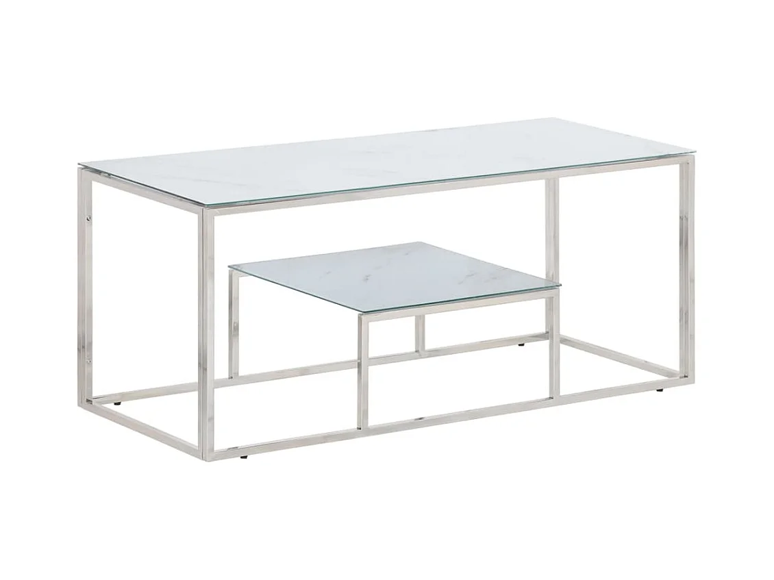 Tavolino Salotto Argento Acciaio Inossidabile Vetro Temperato