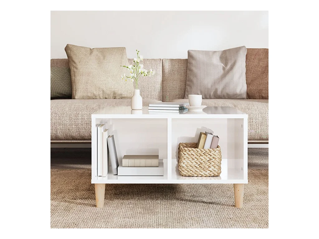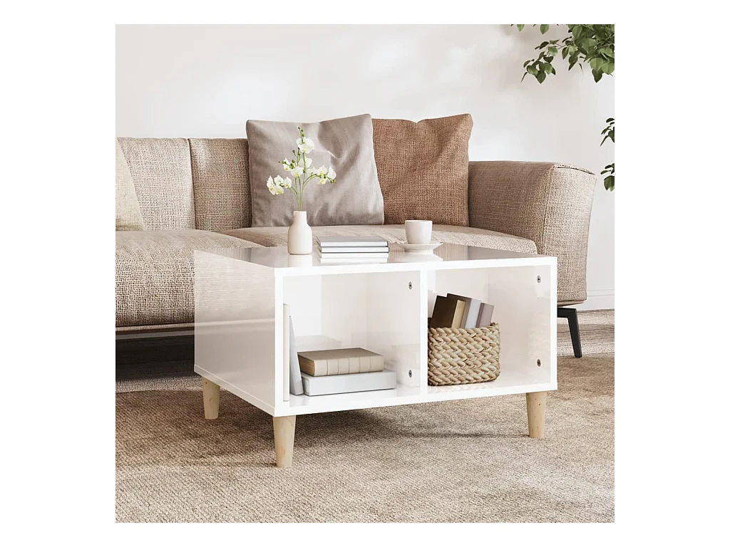 Tavolino Salotto Bianco Lucido 60x50x36,5 cm Legno Multistrato