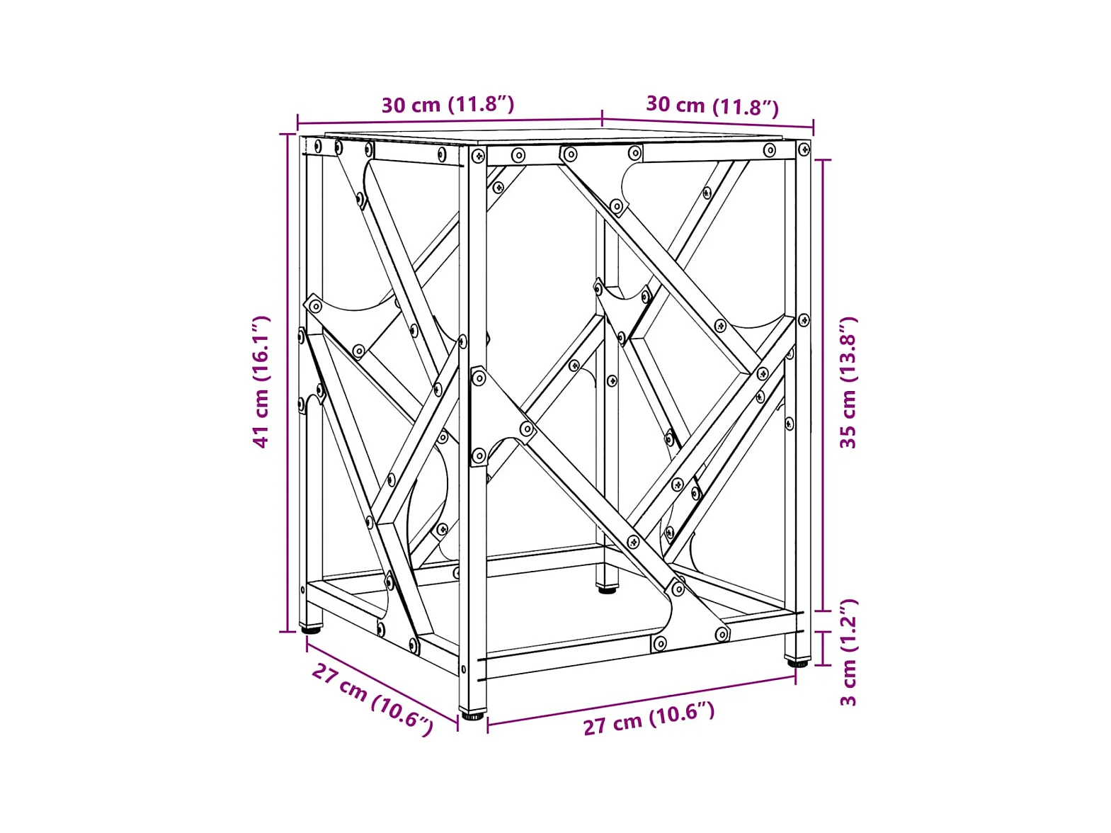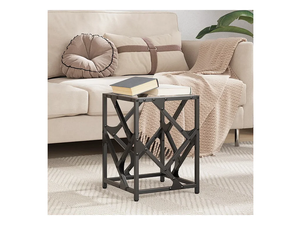 Tavolino Salotto con Piano Vetro Trasparente 30x30x41cm Acciaio