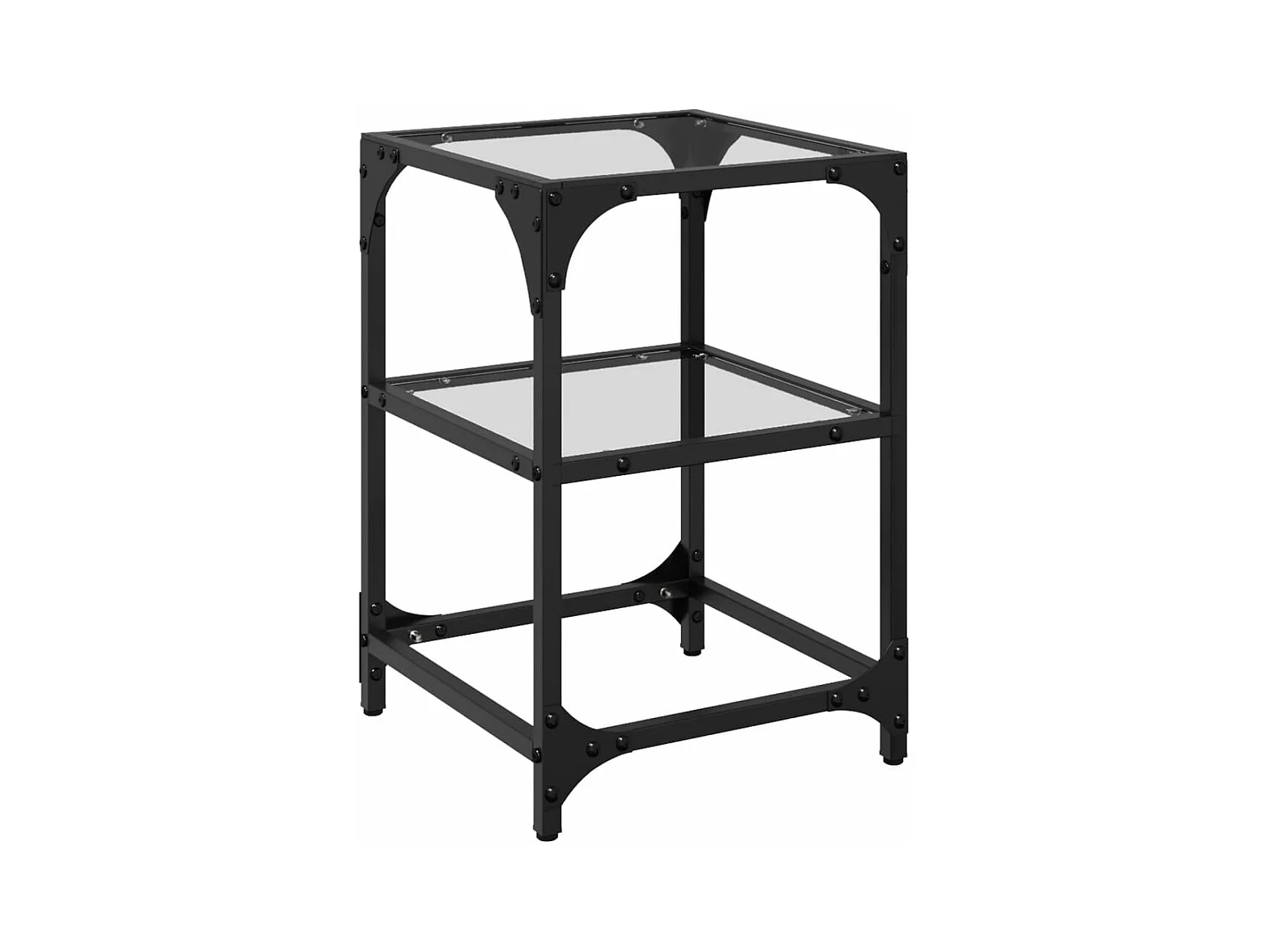 Tavolino Salotto con Piano Vetro Trasparente 40x40x45cm Acciaio