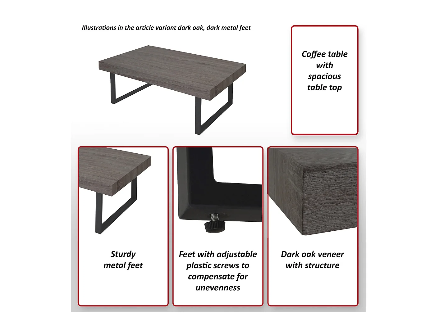 Tavolino salotto divano elegante Kos T573 legno di pioppo rivestito 60x110x43cm colore rovere naturale