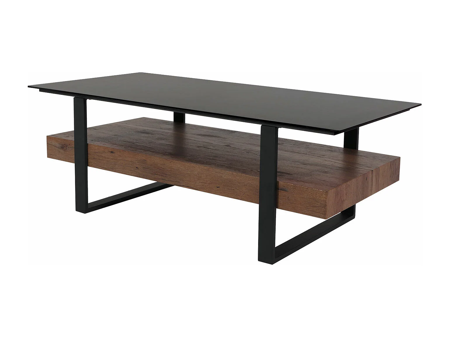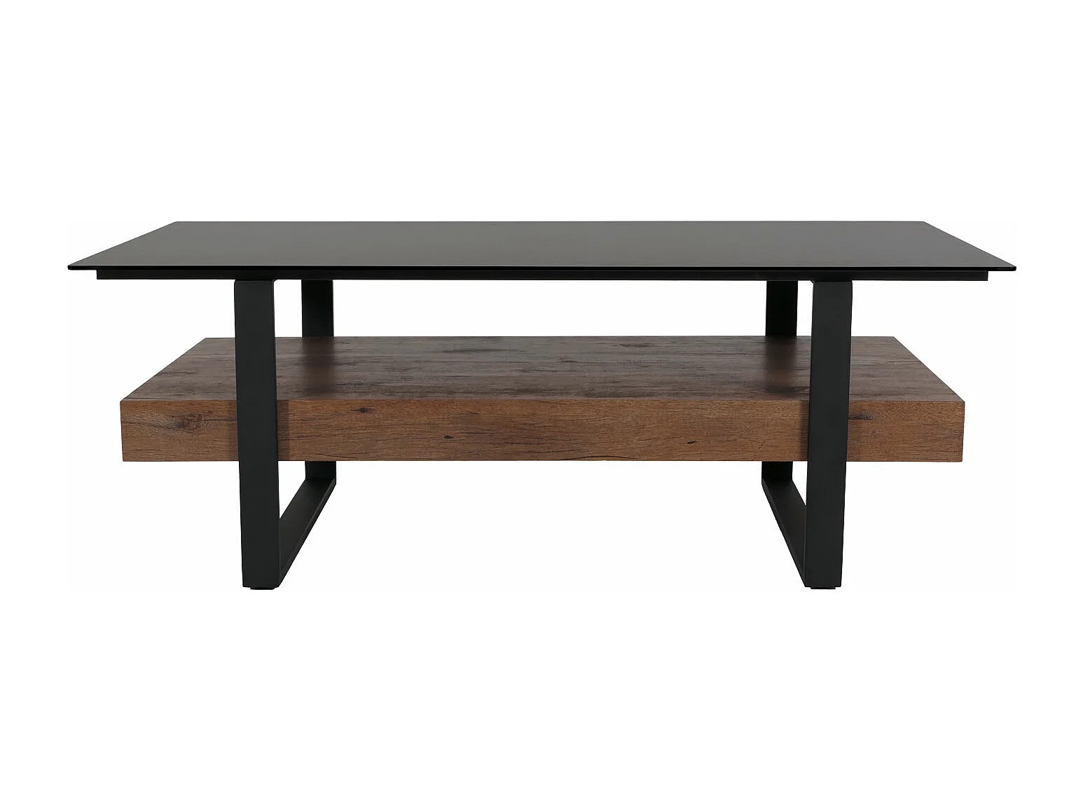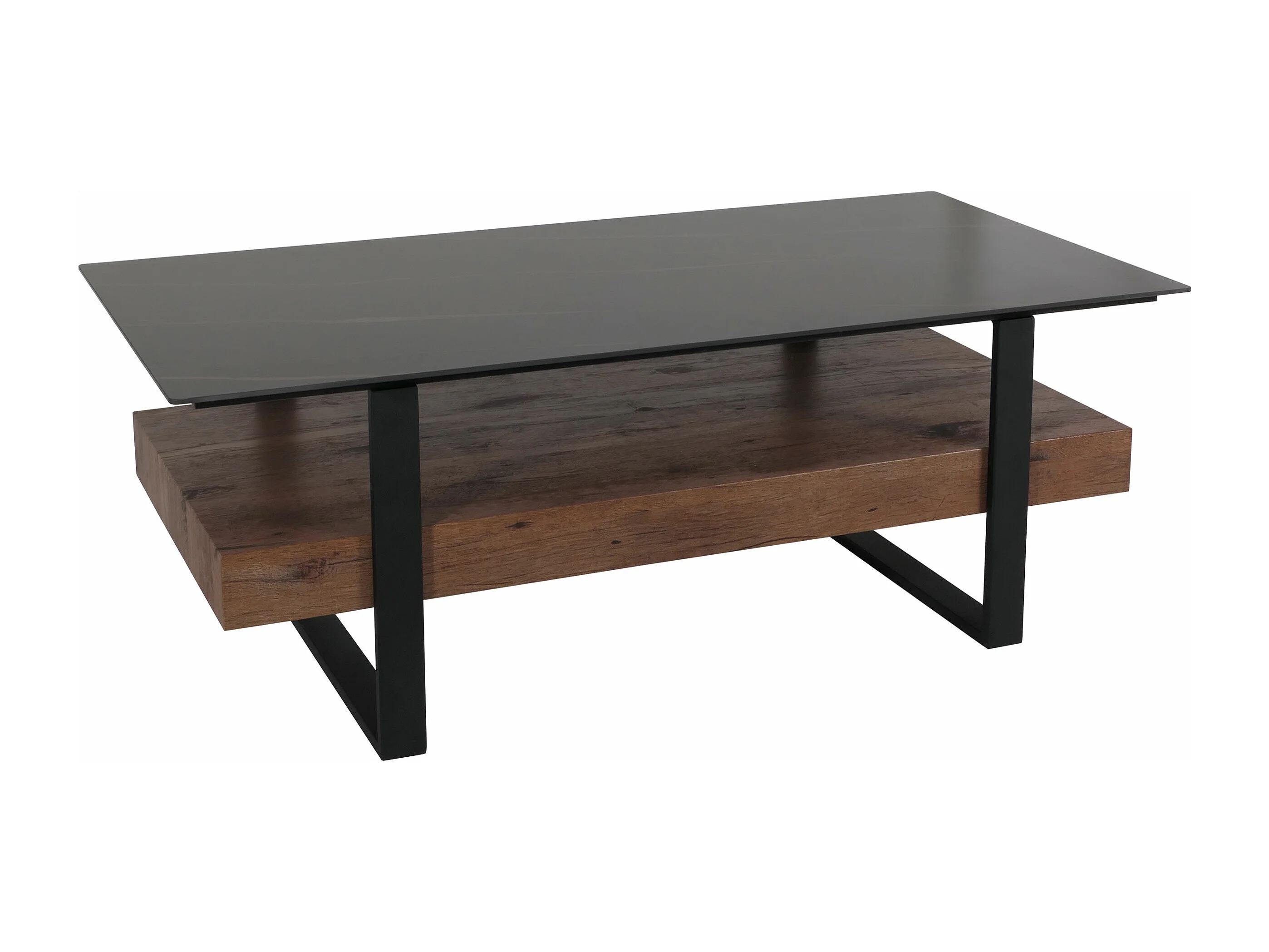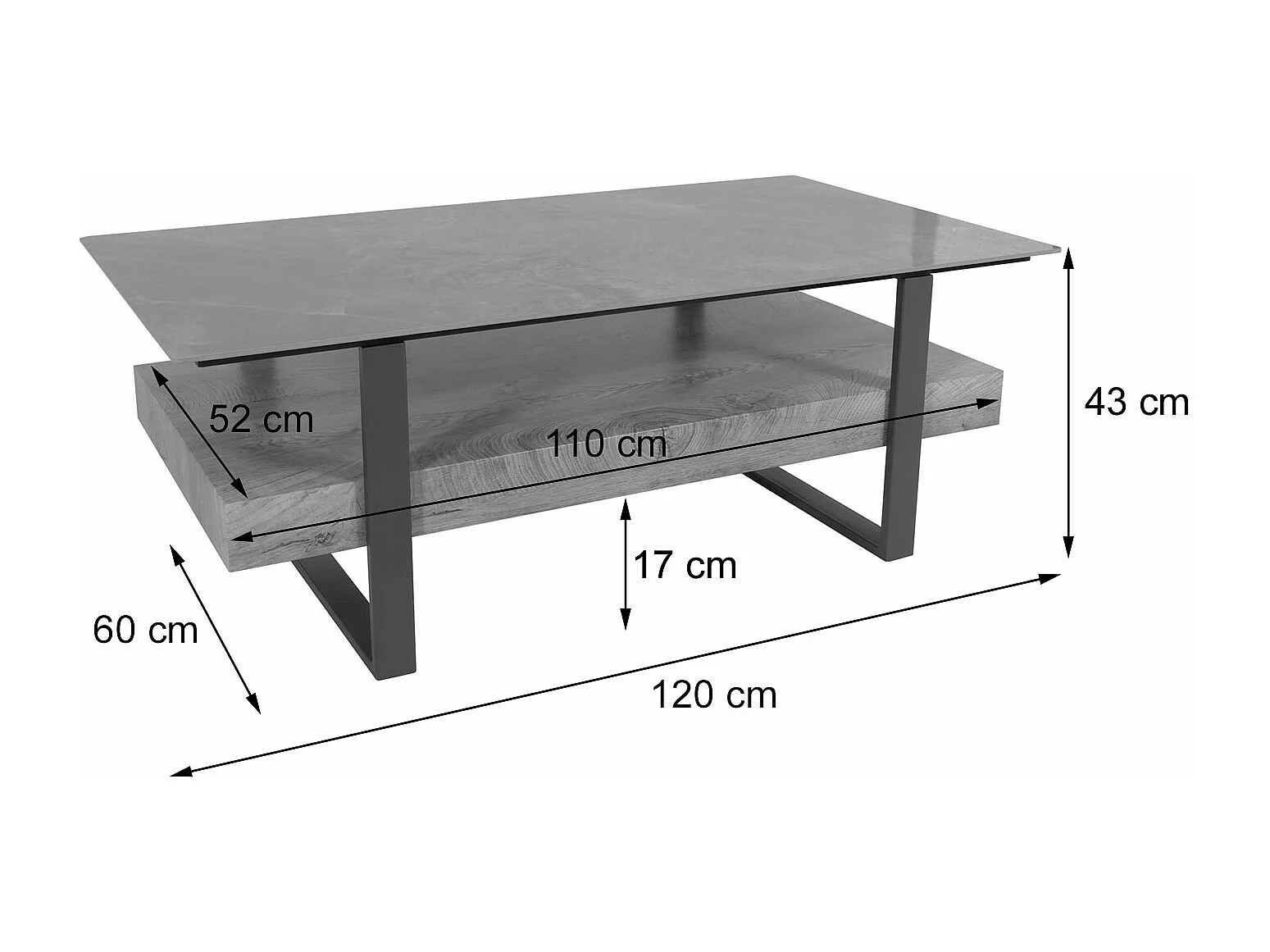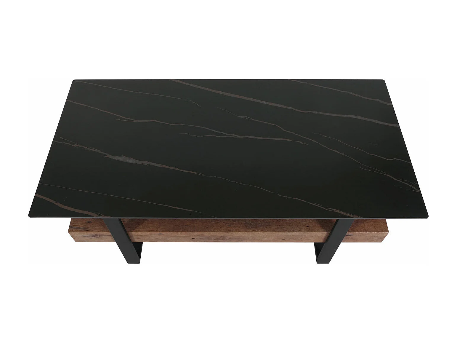 Tavolino salotto divano MCW-L88 43x120x60cm pietra sinterizzata MDF gambe nere legno scuro effetto marmo marrone