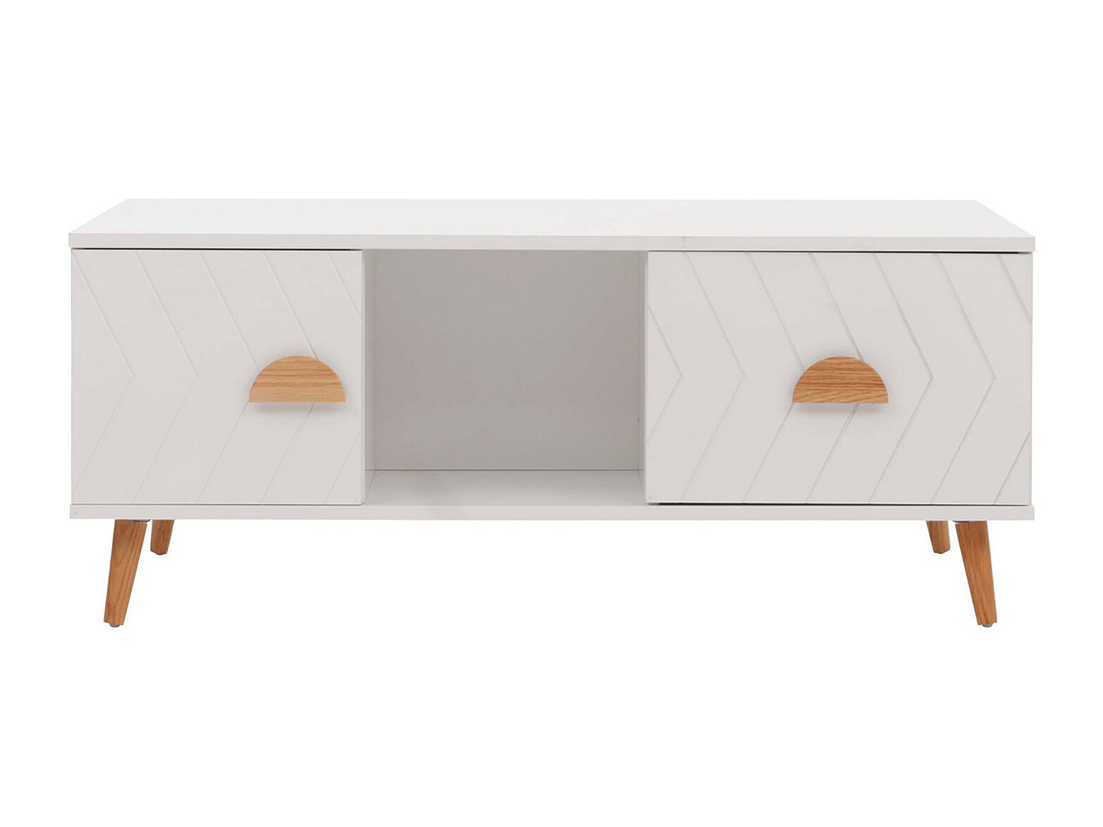 Tavolino salotto divano MCW-N89, tavolo d'appoggio, 2 cassetti in legno melaminico, 42x103x60cm ~ bianco
