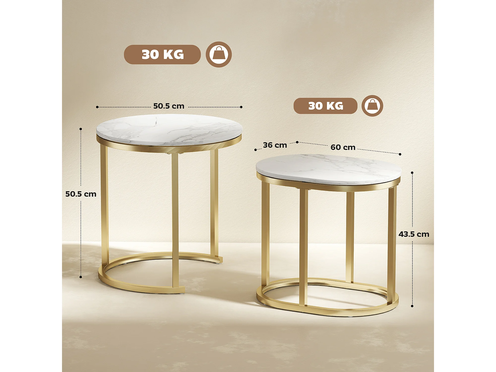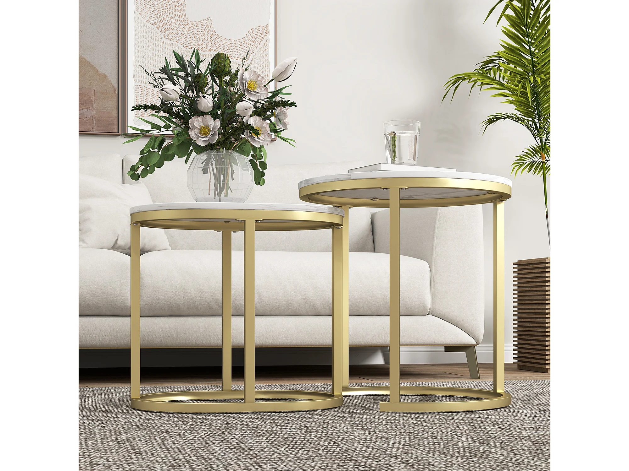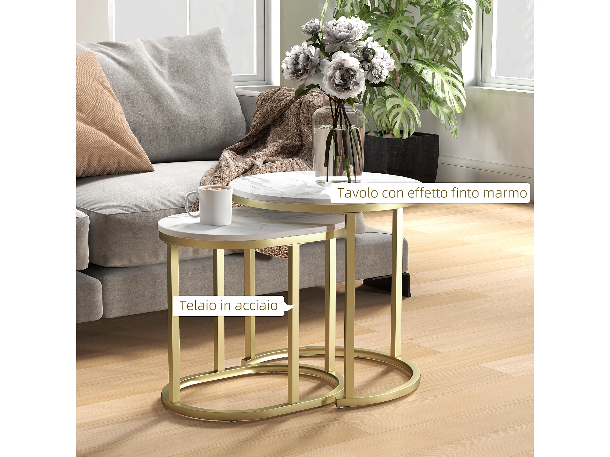 Tavolino salotto sovrapponibili con piano effetto marmo