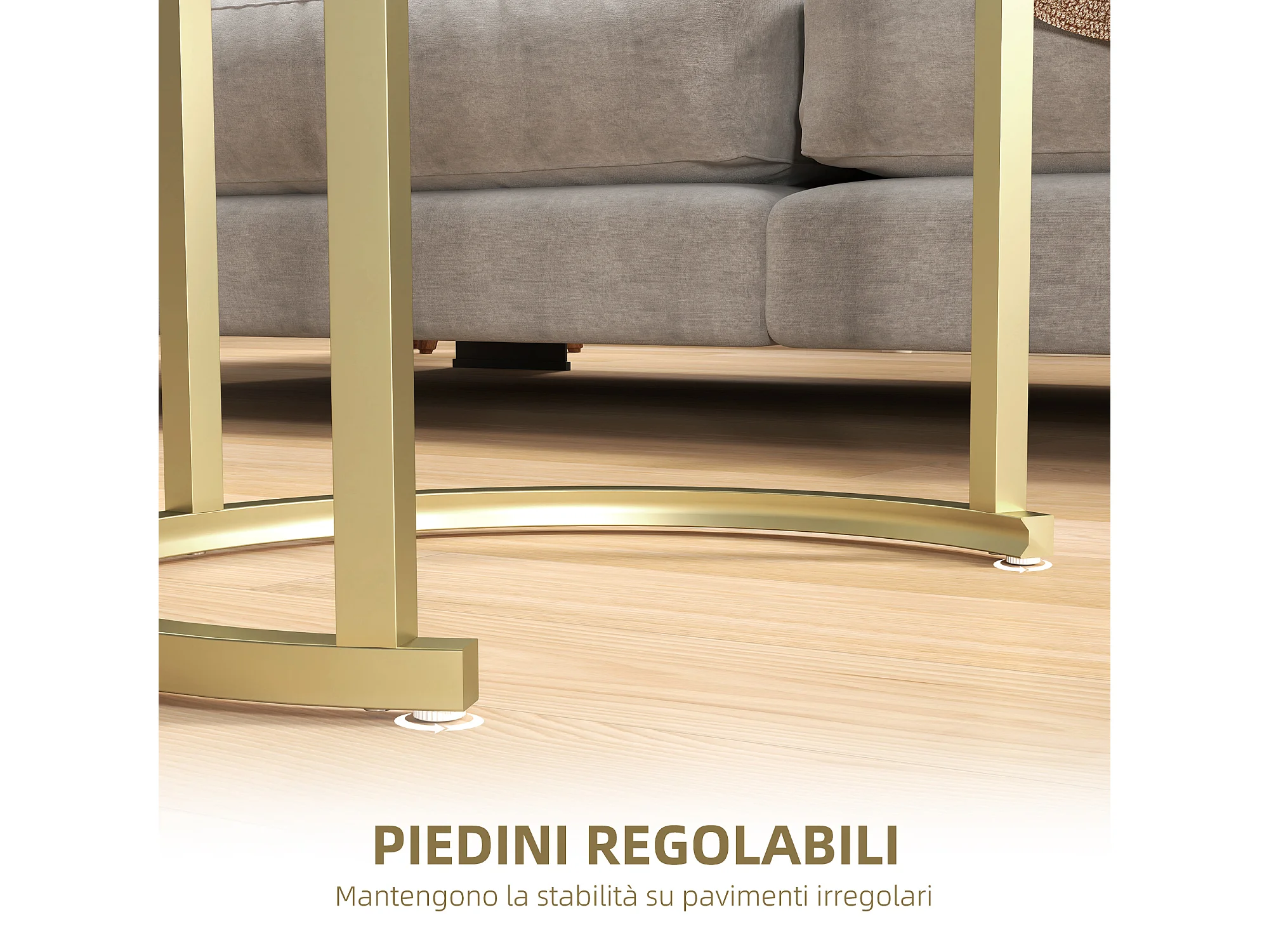 Tavolino da salotto rotondo bordo rialzato in legno bianco oro