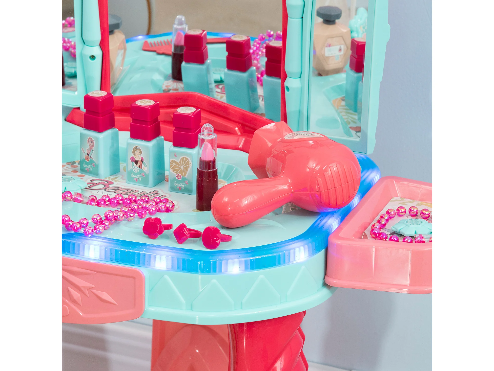 Tavolino toeletta per bambine con sgabello e specchio multicolore