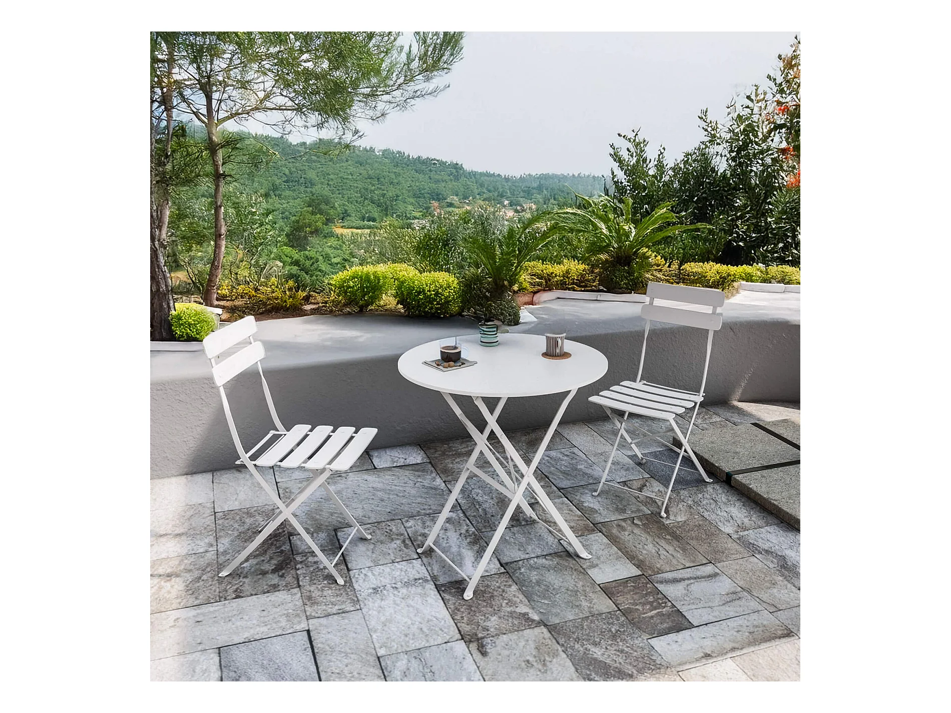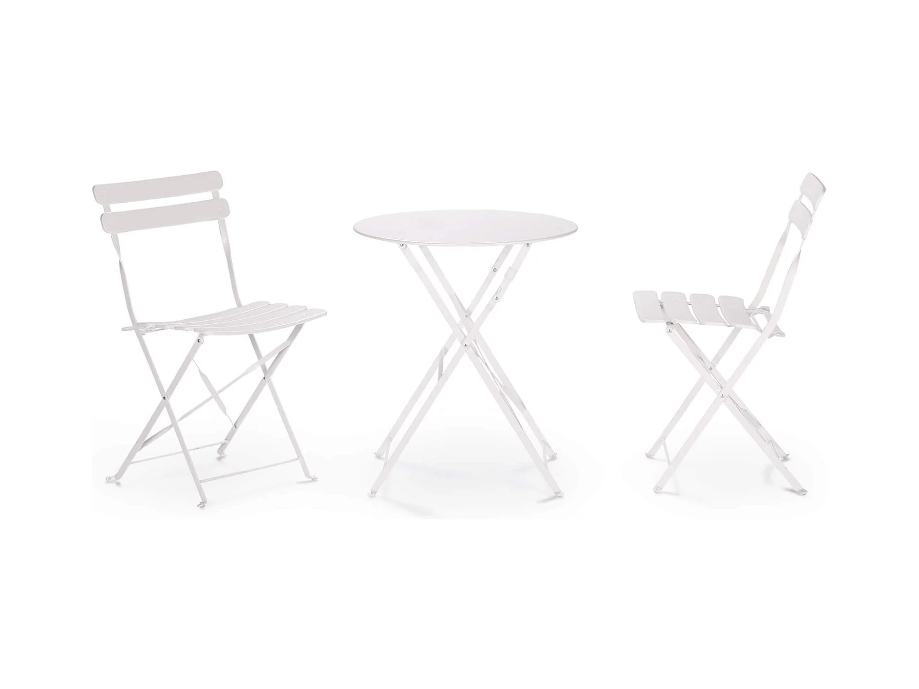 Set bistrot con tavolo e 2 sedie in acciaio bianco - WISSANT
