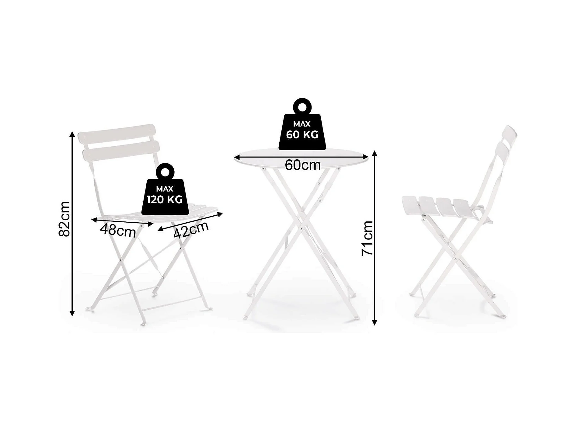 Set bistrot da giardino bianco 3 pezzi Ambar, tavolo e 2 sedie