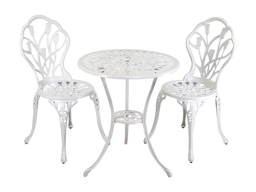 Tavolo alluminio pressofuso Parma bianco anticato tondo con 2 sedie