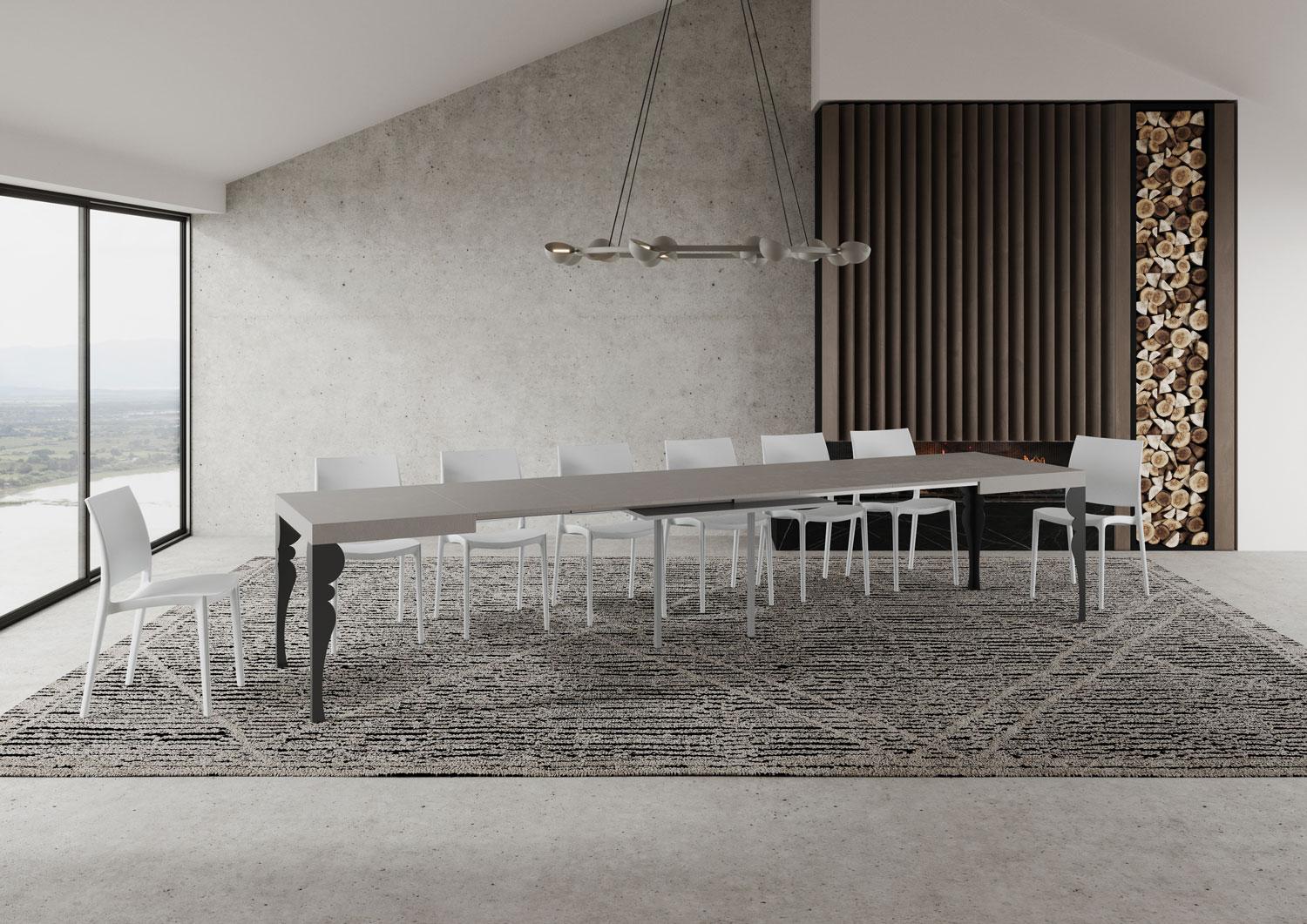 Tavolo allungabile 120/380x90 cm Tecno cemento gambe antracite