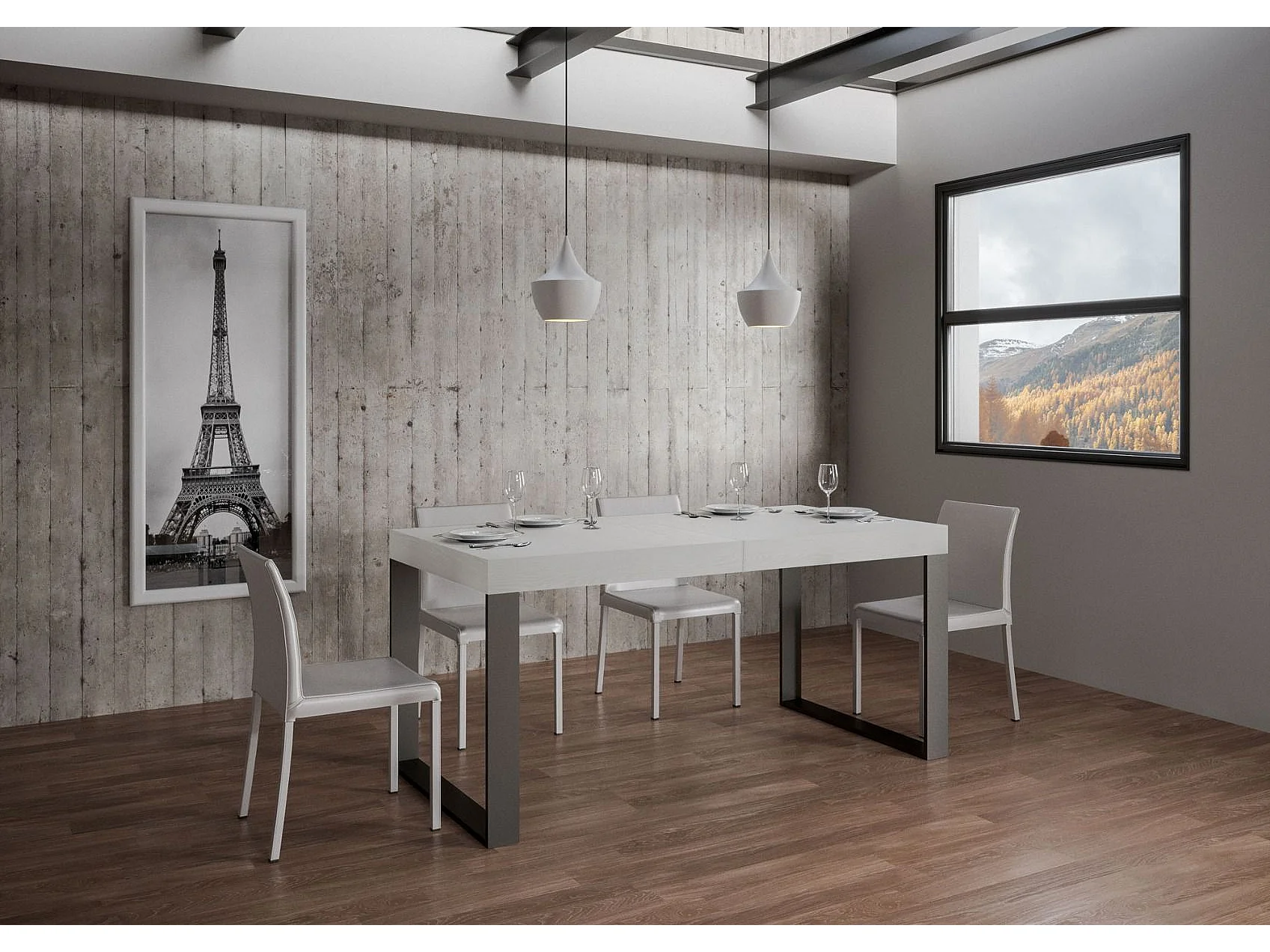Tavolo allungabile 120/380x90 cm Flame bianco frassino gambe antracite