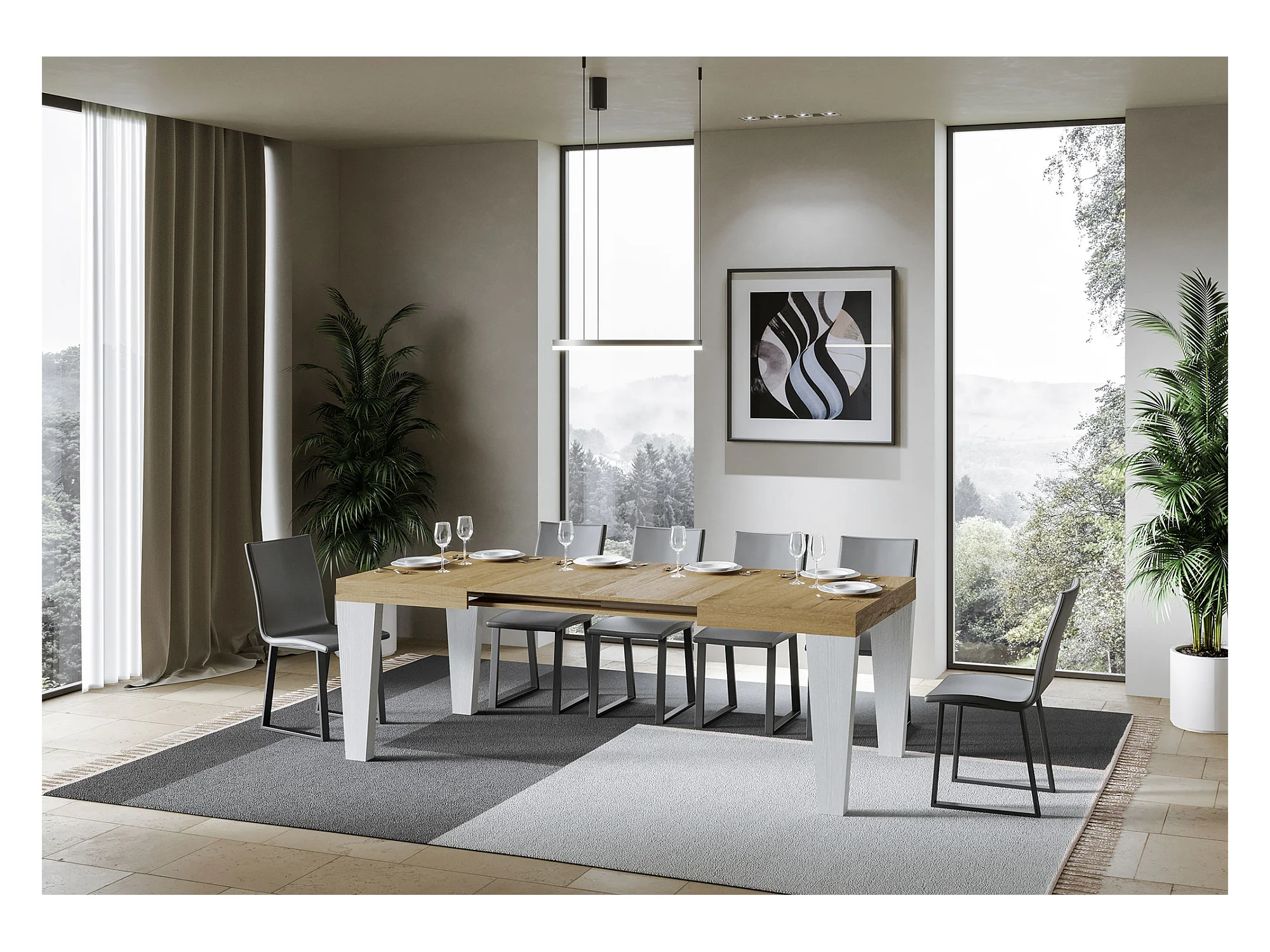 Tavolo allungabile 90x130/234 cm Naxy Mix piano Bianco Frassino - gambe Quercia Natura
