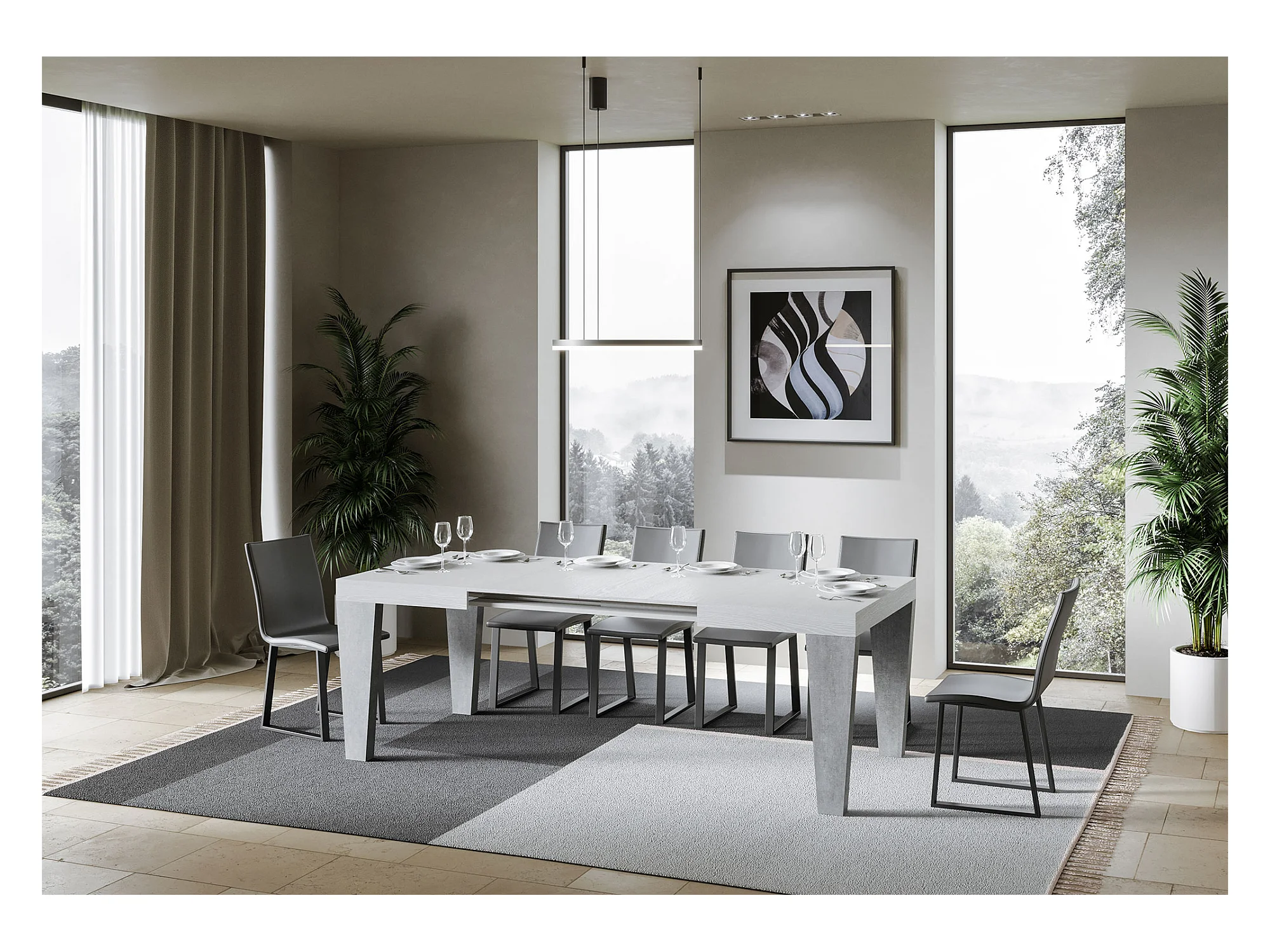 Tavolo allungabile 90x160/420 cm Roxell Mix piano Bianco Frassino - gambe Cemento
