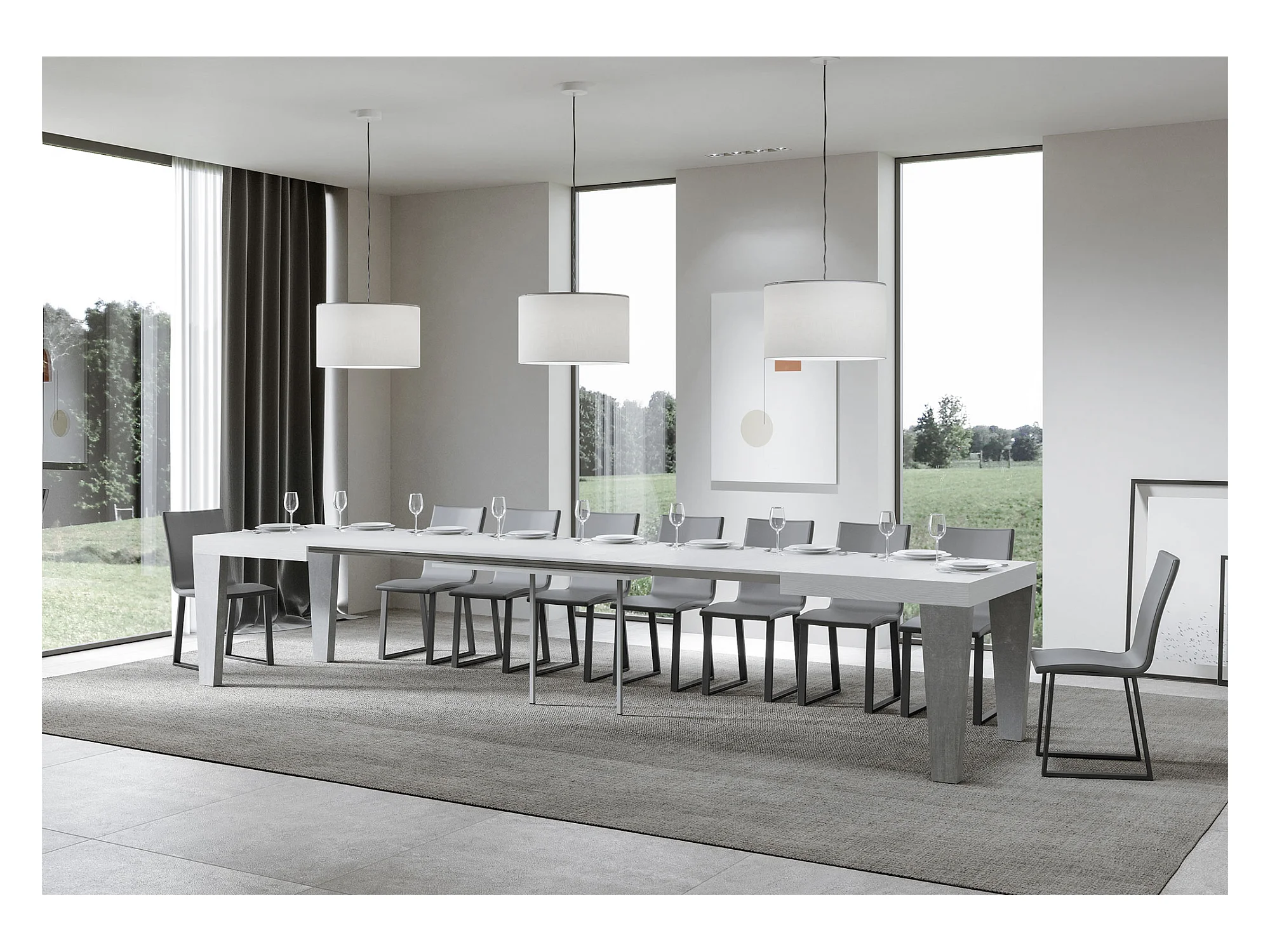 Tavolo allungabile 90x160/420 cm Spimbo Mix piano Bianco Frassino - gambe Cemento