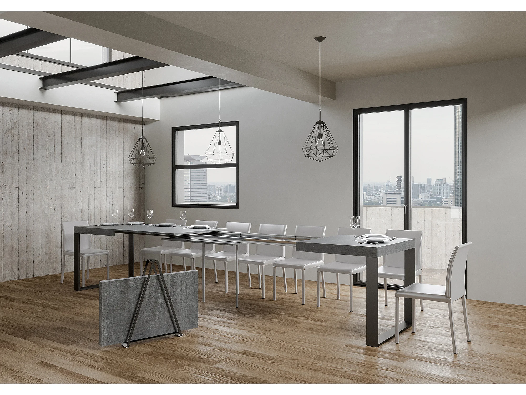 Tavolo allungabile 90x140/400 cm Tecno cemento telaio Antracite