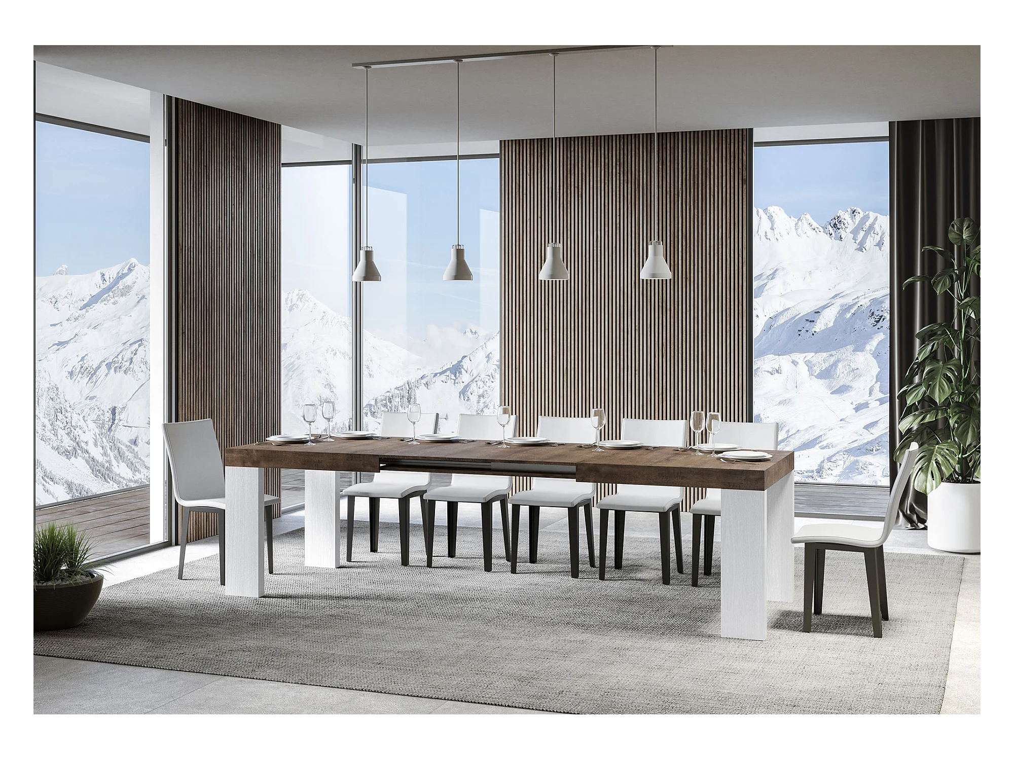 Tavolo allungabile 90x130/390 cm Naxy Mix piano Bianco Frassino - gambe Noce