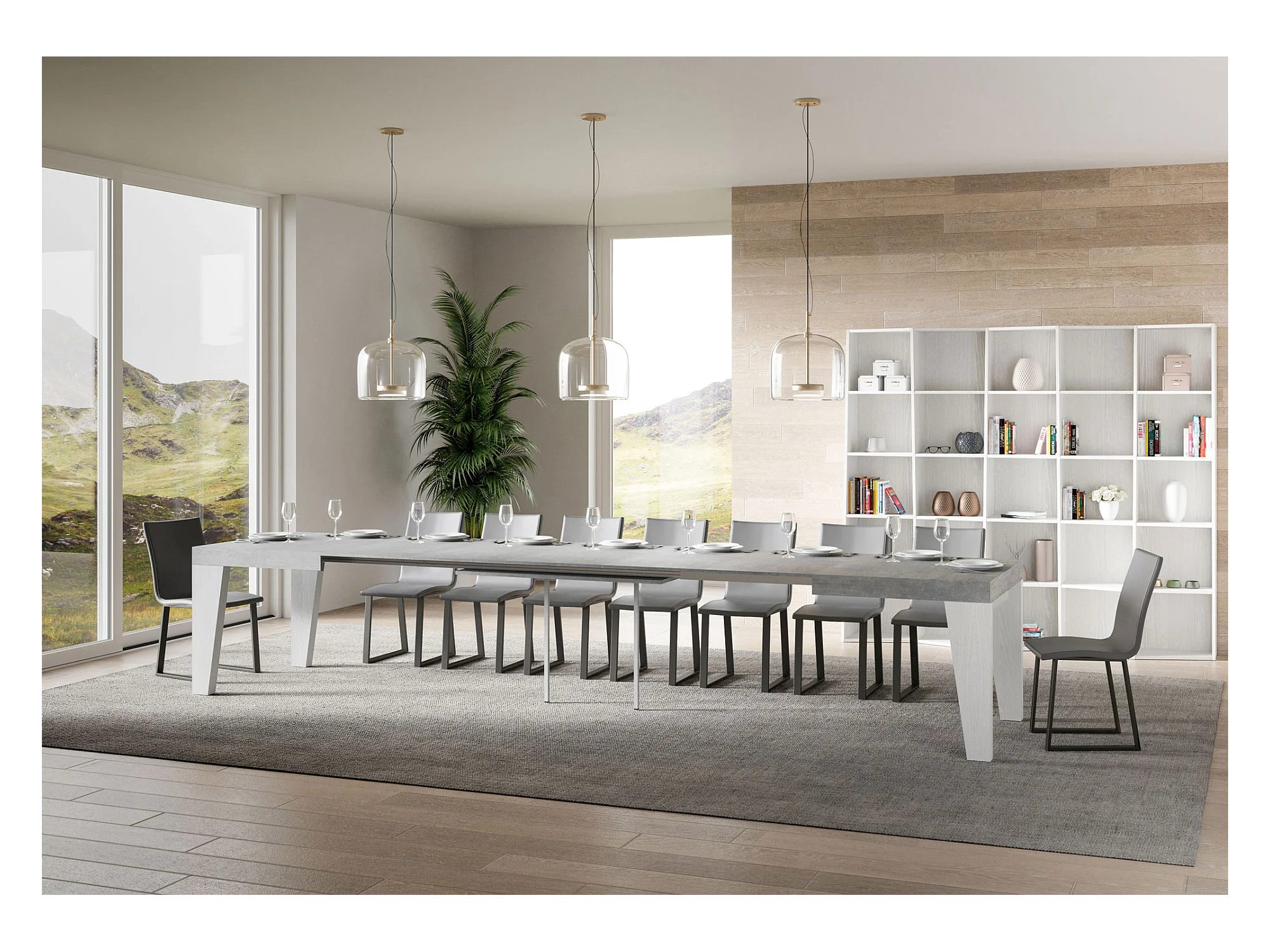Tavolo allungabile 90x130/390 cm Naxy Mix piano Cemento - gambe Bianco Frassino
