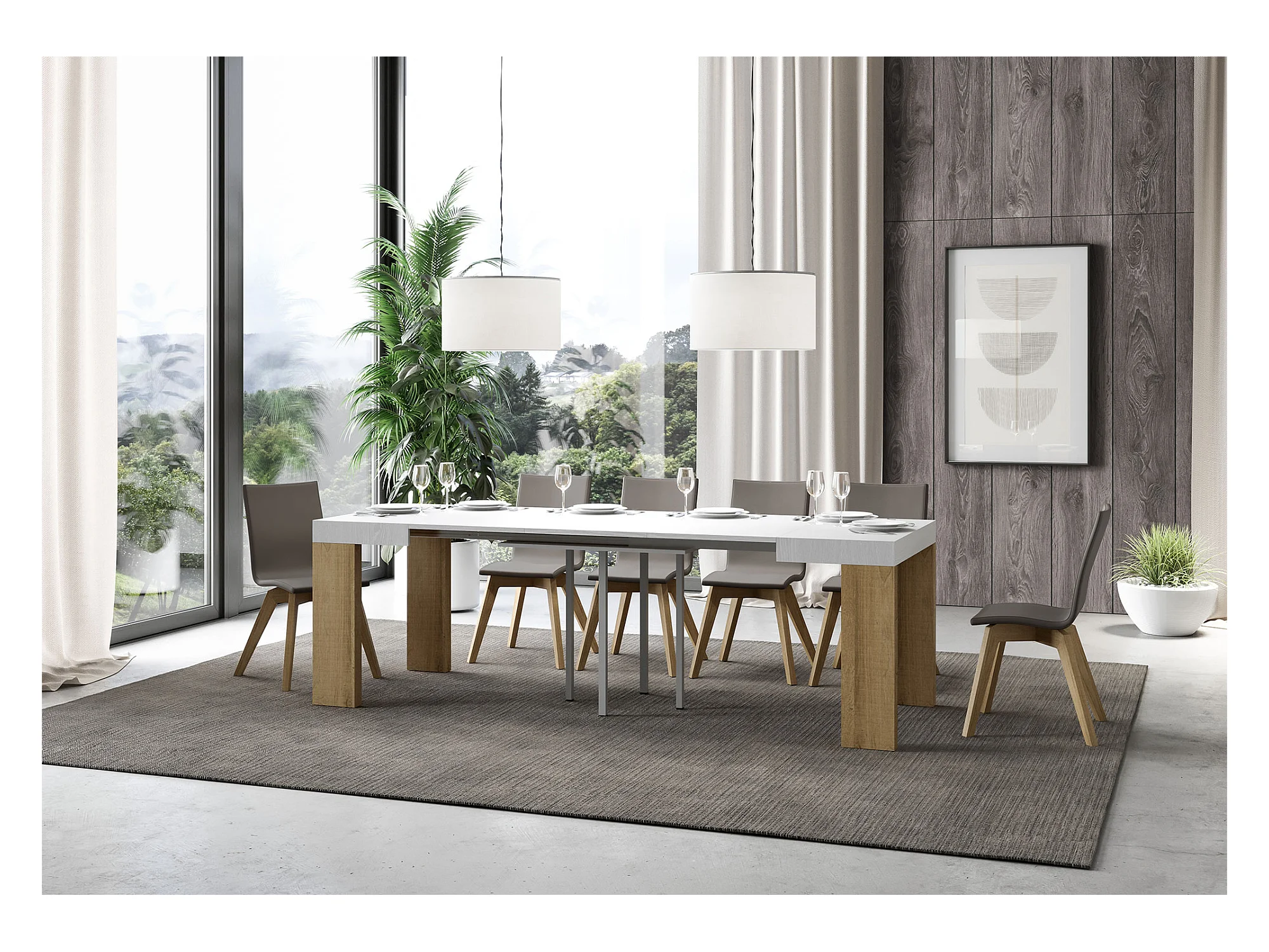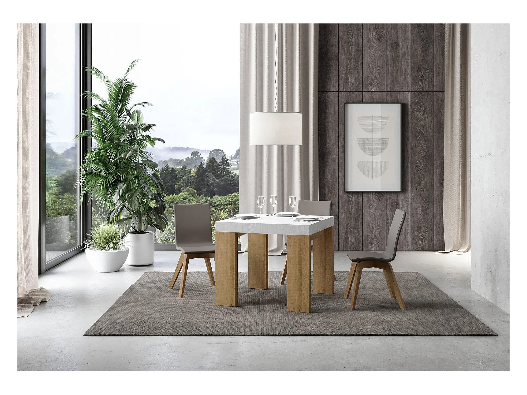 Tavolo allungabile 90x90/246 cm Naxy Mix piano Bianco Frassino - gambe Quercia Natura