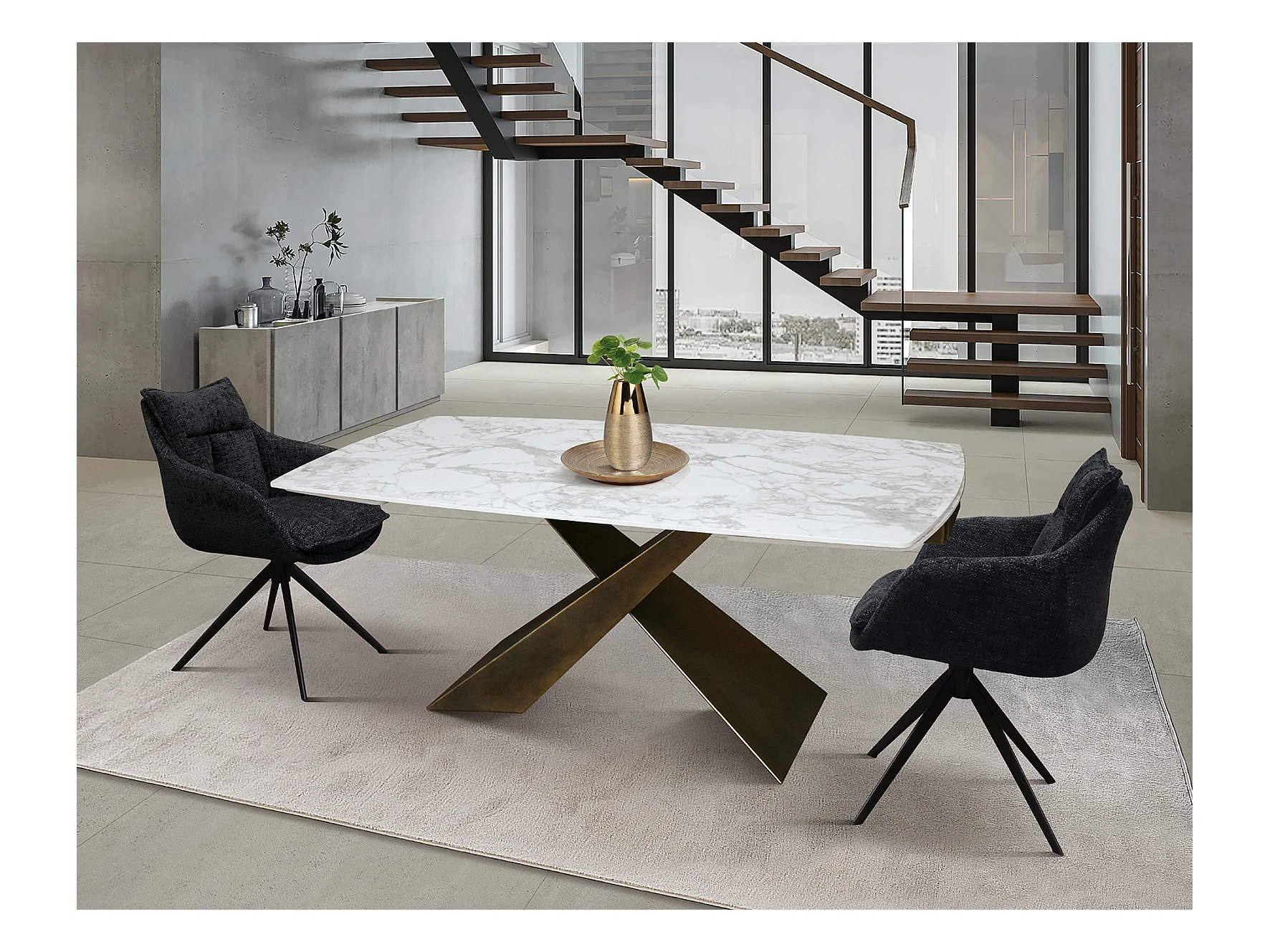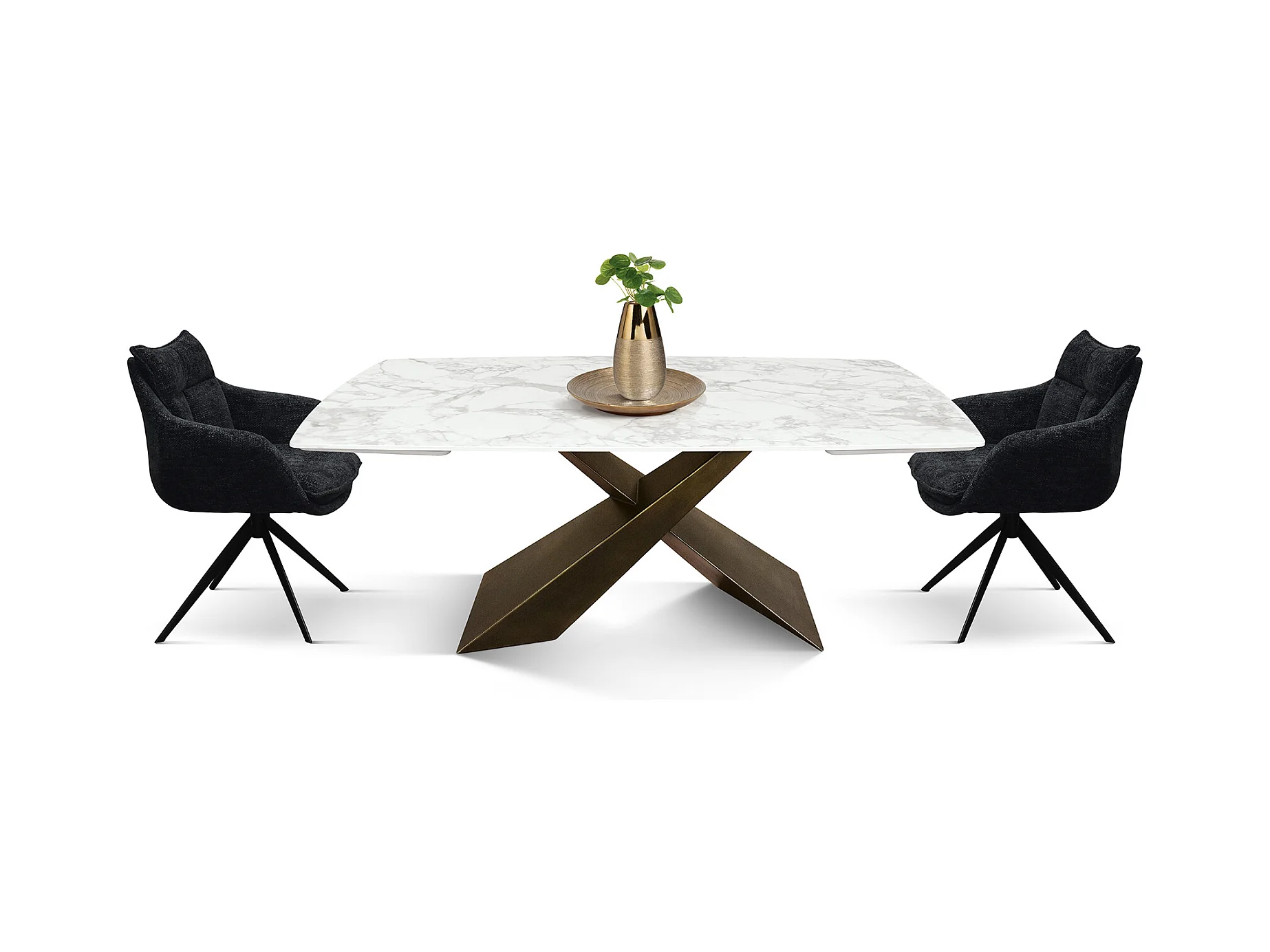 Tavolo allungabile Carlo,Piano in ceramica matt golden nero, gambe in metallo bronzo a X, 180x90 cm