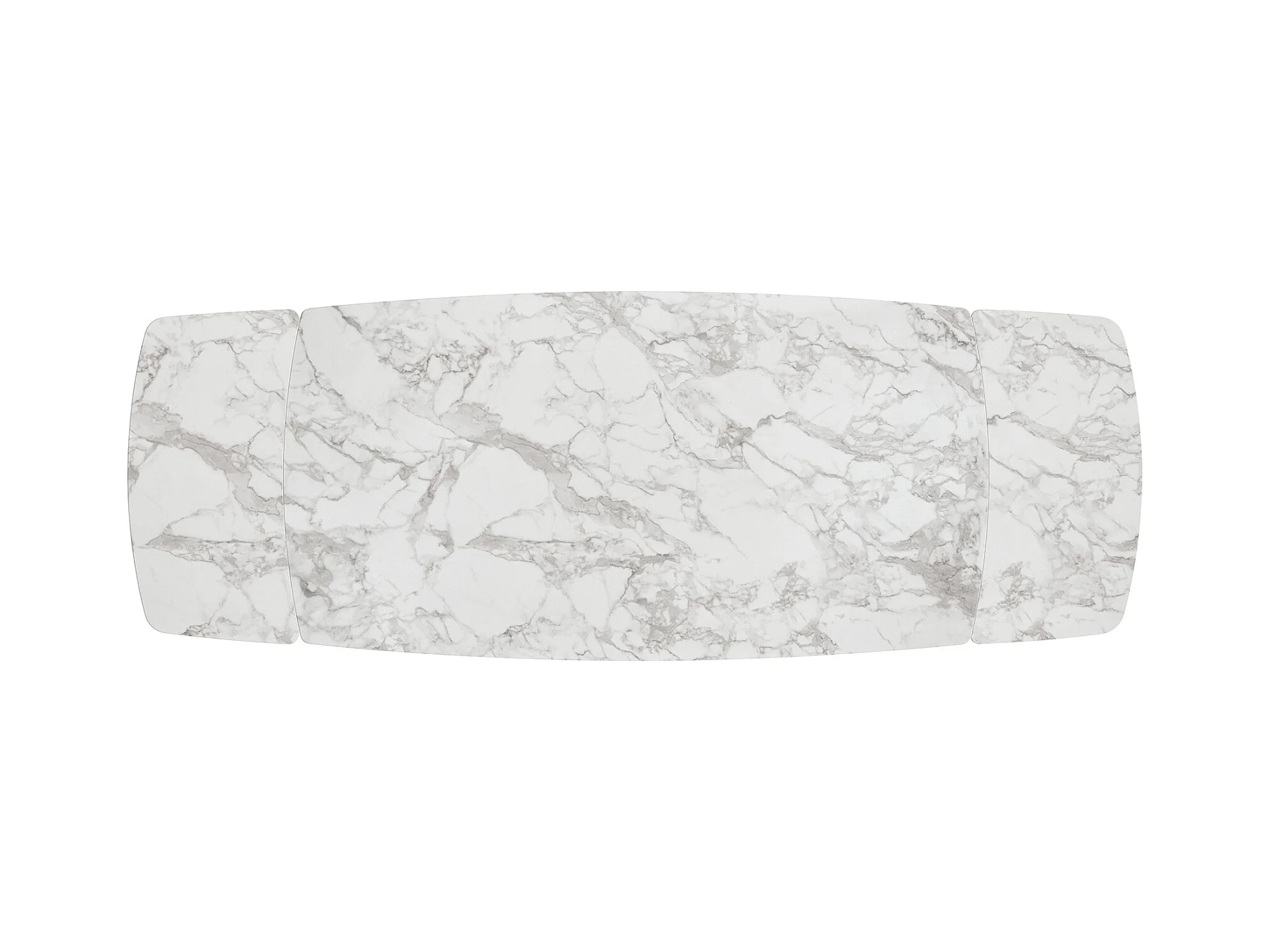 Tavolo allungabile Bea, Top Ceramica Statuario, Gambe in Metallo Bianco, da 120 a 180