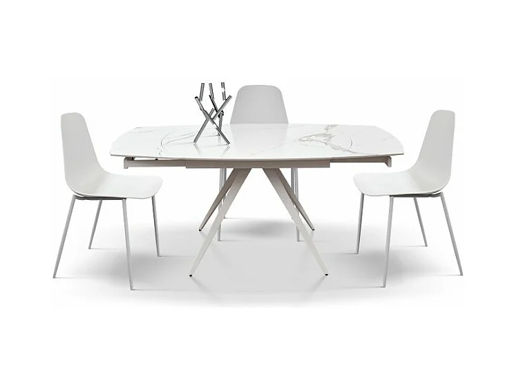 Tavolo allungabile Bea, Top Ceramica Statuario, Gambe in Metallo Bianco, da 120 a 180