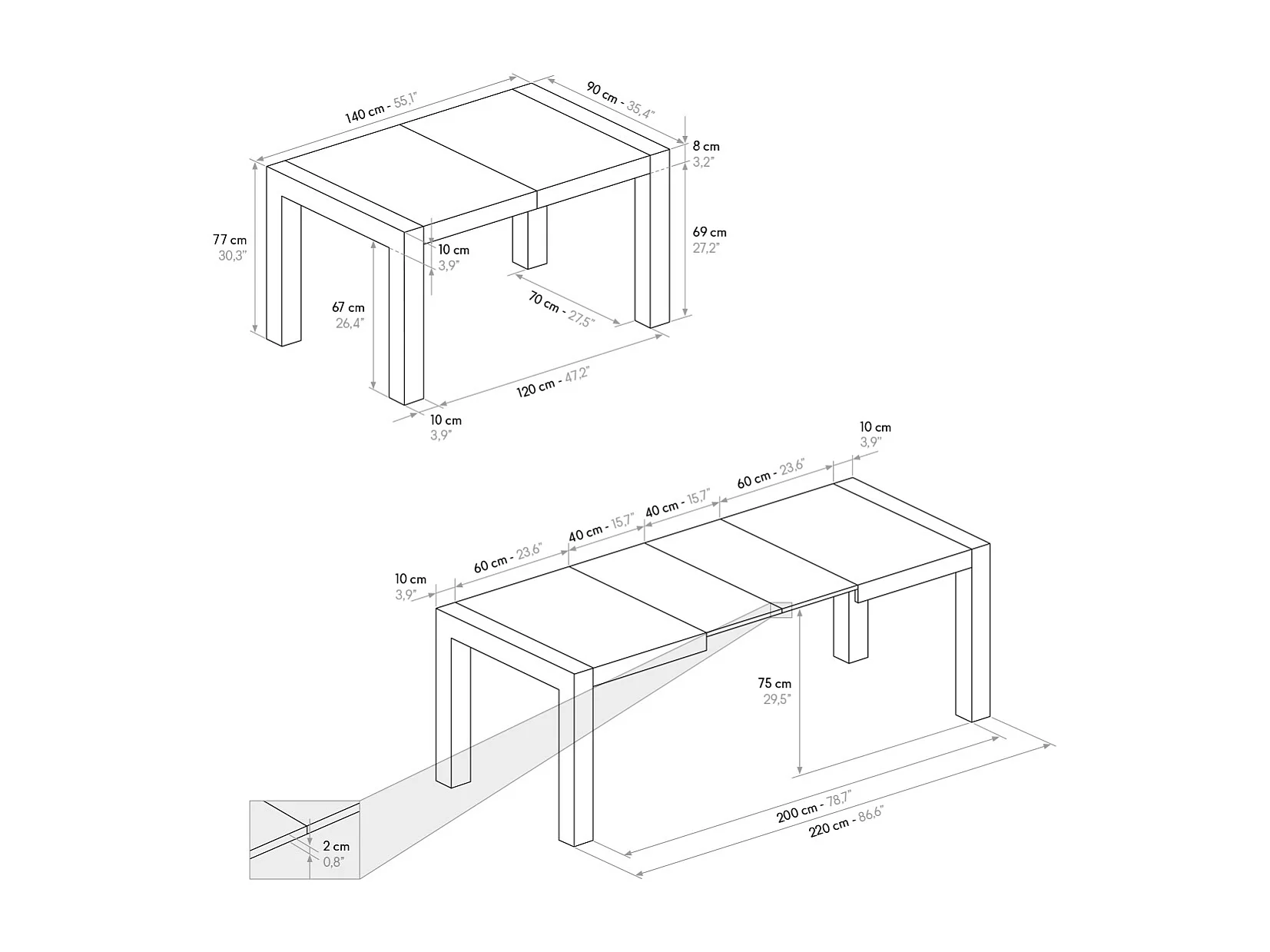 Tavolo allungabile Lola, Grigio Cemento, Nobilitato melaminico, Made in Italy, da 140 a 220